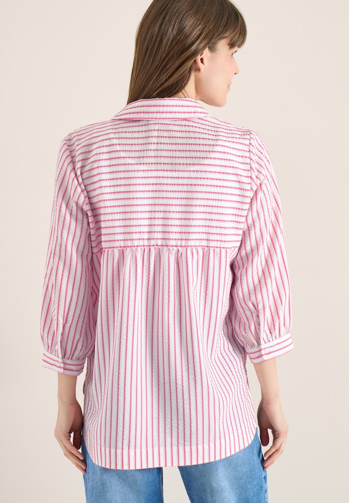 Die gestreifte Seersucker Hemdbluse von CECIL für Damen ist ideal für sommerliche Casual-Looks. Die leichte Qualität sorgt für ein angenehmes Tragegefühl. Hemdkragen, Knopfleiste und 3/4-Ärmel machen den Look zeitlos. Der gerundete Saum rundet das Design lässig ab. Damenbluse Casual Hemdkragen 3/4-Arm Streifenmuster Material: 65% Polyester, 35% Viskose