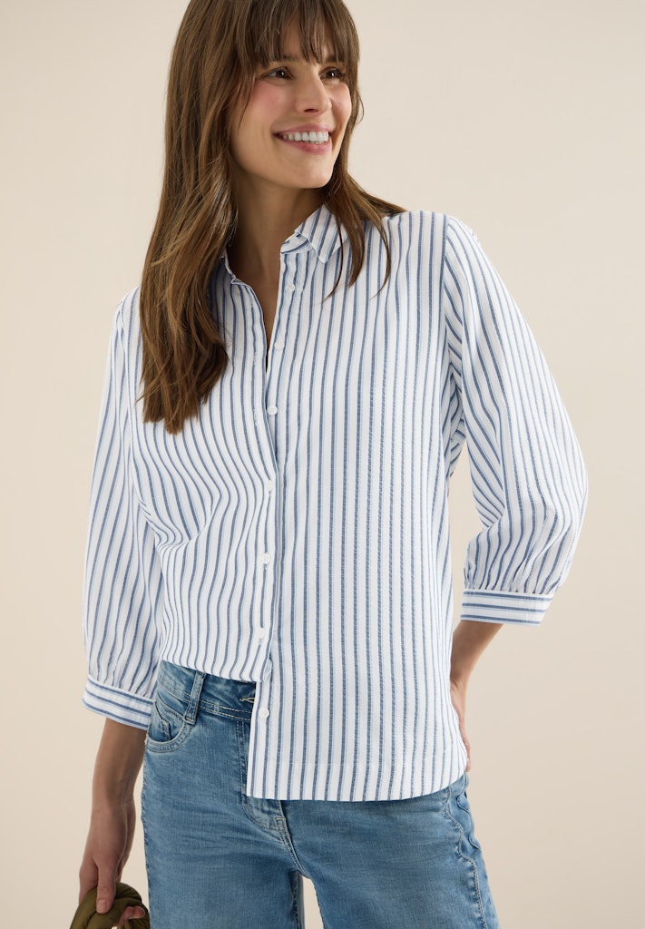 Die gestreifte Seersucker Hemdbluse von CECIL für Damen ist ideal für sommerliche Casual-Looks. Die leichte Qualität sorgt für ein angenehmes Tragegefühl. Hemdkragen, Knopfleiste und 3/4-Ärmel machen den Look zeitlos. Der gerundete Saum rundet das Design lässig ab. Damenbluse Casual Hemdkragen 3/4-Arm Streifenmuster Material: 65% Polyester, 35% Viskose