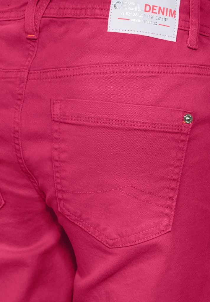 Die Jeansshorts im Style Scarlett für Damen von CECIL bieten mit ihrem lässigen Schnitt und der mittelhohen Taille einen entspannten Look. Die pinke used Optik verleiht ihnen einen frischen Touch, während die lässig gekrempelten Säume für eine lässige Ausstrahlung sorgen. Dekorative Nähte an den Taschen ergänzen das Design dieser Shorts, die ideal für warme Tage sind. Damenshorts Unifarbe Eingrifftaschen Middle Waist Material: 97% Baumwolle, 3% Elasthan