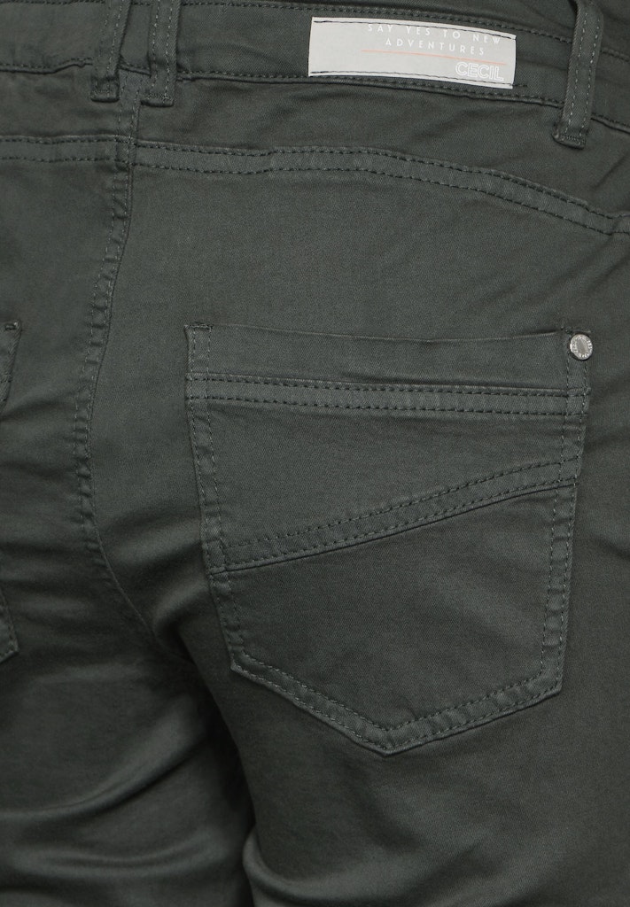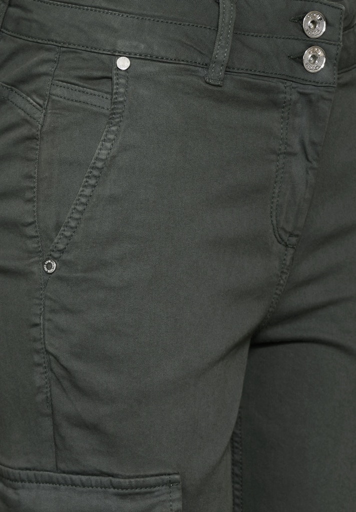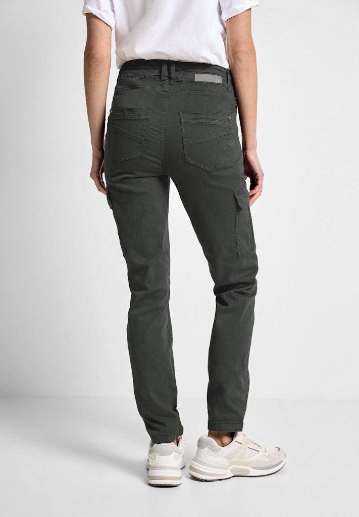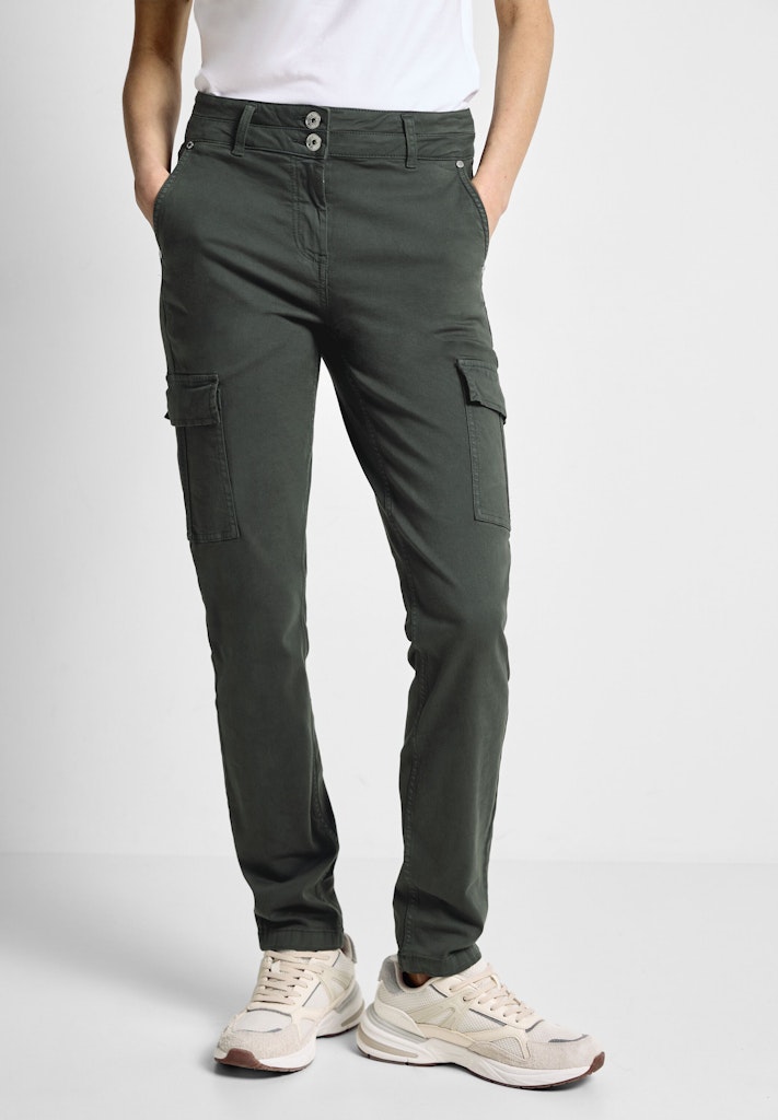 Die Cargohose im Style Toronto mit aufgesetzten Taschen von CECIL ist ein vielseitiger Allrounder für jeden Tag. Mit einem 2-Knopf- und Reißverschluss sowie seitlichen Eingrifftaschen und Gesäßtaschen bietet sie praktische Funktionalität. Der hohe Bund und das schmale Bein im Slim Fit verleihen der unifarbenen Hose eine moderne Silhouette und machen sie zu einem stylishen Begleiter. Slim Fit Hose High Waist Slim Legs Cargotaschen Eingrifftaschen Unifarbe Material: 98% Baumwolle, 2% Elasthan
