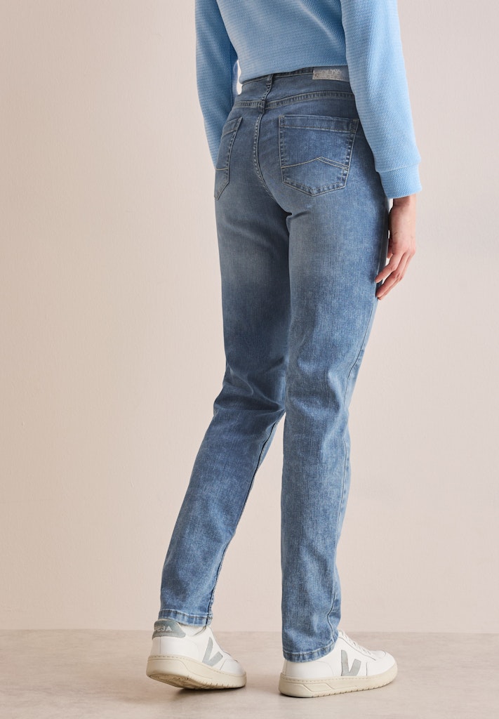 Die Slim Fit Jeans von CECIL für Damen hat eine High Waist und Slim Legs für eine anschmiegsame Passform und eine moderne Silhouette. Der Baumwollmix mit Stretchanteil sorgt dabei dafür, dass die Jeanshose im Style Toronto besonders bequem ist und sich so ideal für den Alltag eignet. Die hellblaue Denim Waschung und das 5-Pocket-Design runden den Look der Jeans ab. Jeanshose High Waist und Slim Legs Hellblaue Denim Waschung 5-Pocket Baumwollmix mit Stretchanteil Material: 69% Baumwolle, 29% Polyester, 2% Elasthan