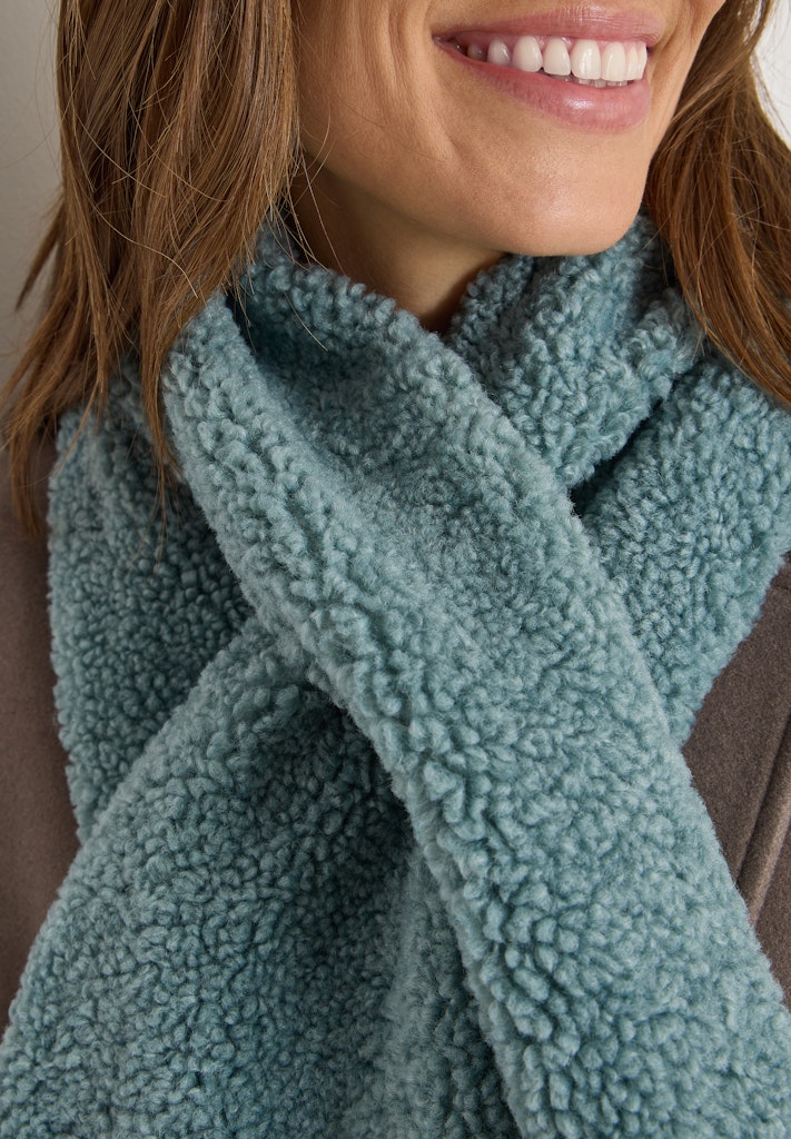 Der Teddy Schal von CECIL für Damen überzeugt mit besonders weicher Qualität und einem praktischen Schlitz zum Binden. Kuschelig, warm und einfach zu stylen – ein idealer Begleiter für gemütliche Winterlooks. Kuscheliger Schal Schlitz zum Binden Weiche Teddy-Qualität Softe Jersey-Rückseite Material: Vorderseite: 100% Polyester; Rückseite: 50% Modal, 50% Baumwolle
