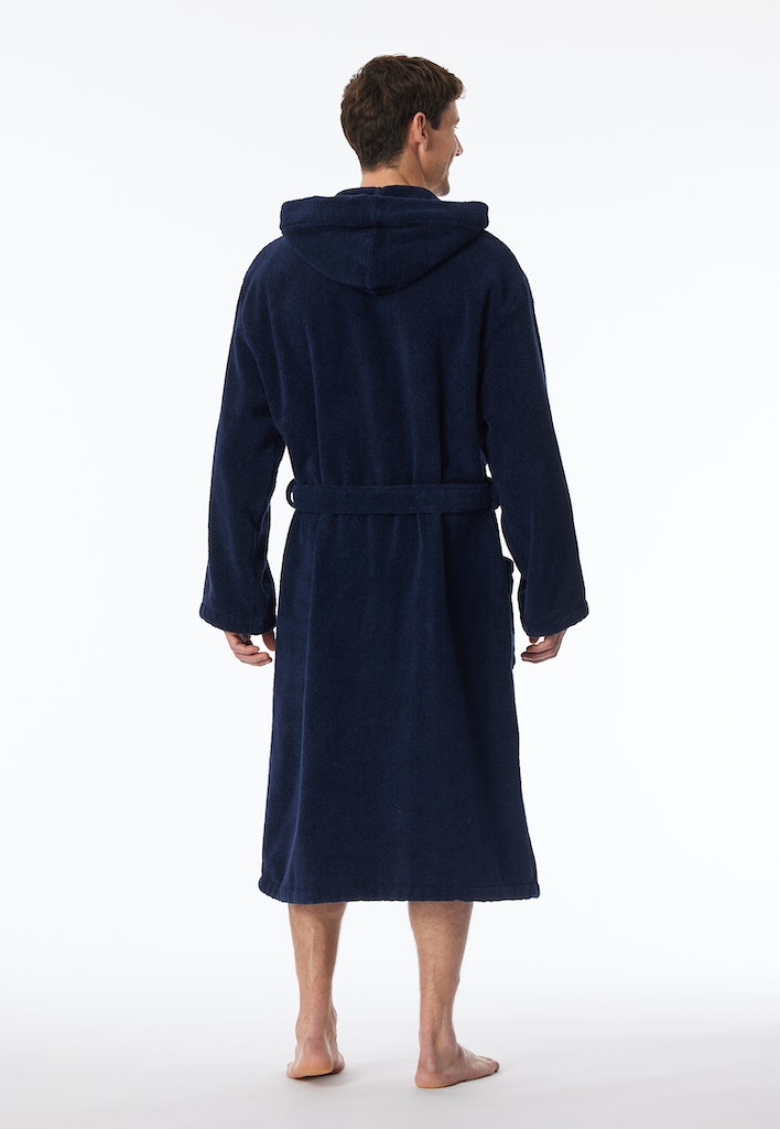 Dieser graue Bademantel schmeichelt anspruchsvollen Herren mit einem angenehm soften Material in bester SCHIESSER-Qualität. Hochwertiger Frottee aus 100% Baumwolle spendet dabei ein behagliches Gefühl auf der Haut und erhält mit der großen Kapuze, einem Bindegürtel und zwei aufgesetzten Taschen stimmige Details. Der perfekte Begleiter nach einem entspannten Vollbad, dem Sauna-Gang oder zum duftenden Kaffee und Tageszeitung am Morgen!