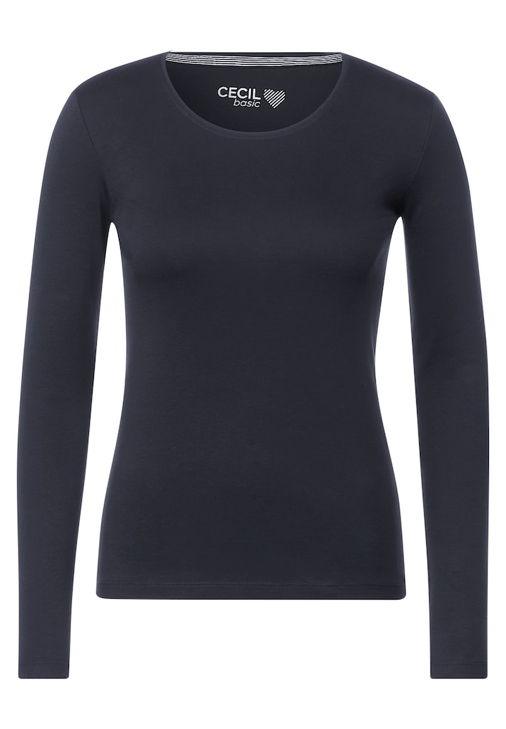 CECIL Damen Langarmshirt, Basic, Unifarbe, Baumwolle, Rundhalsausschnitt