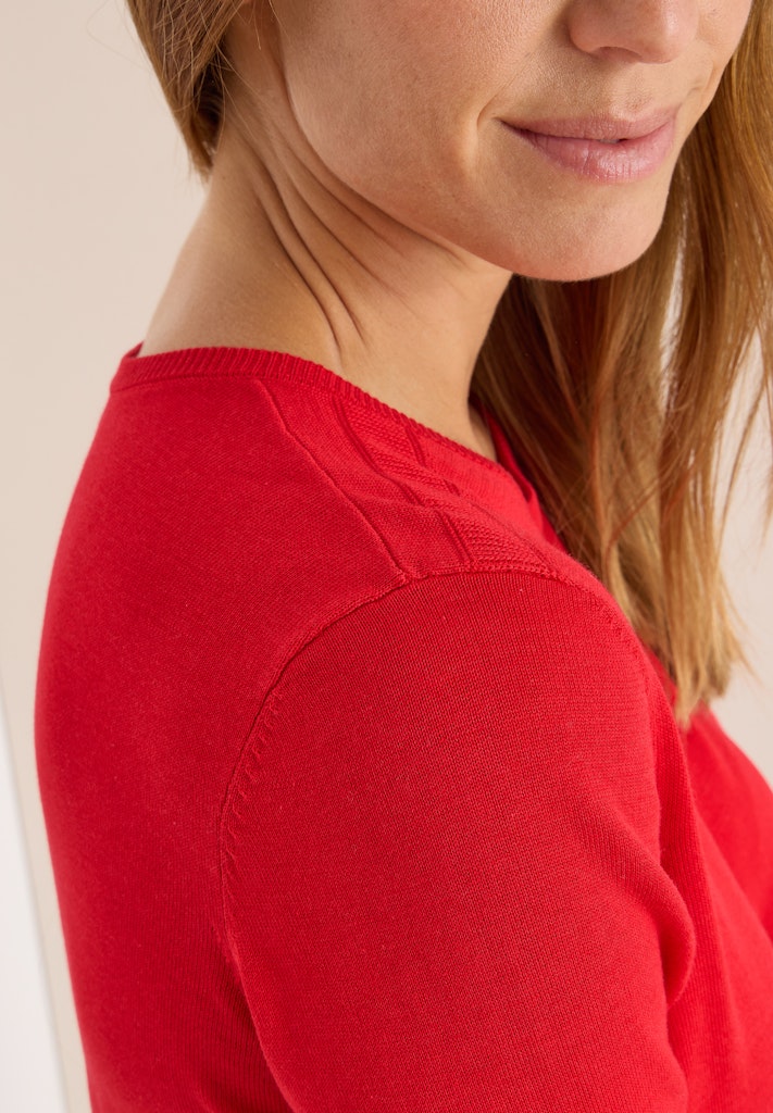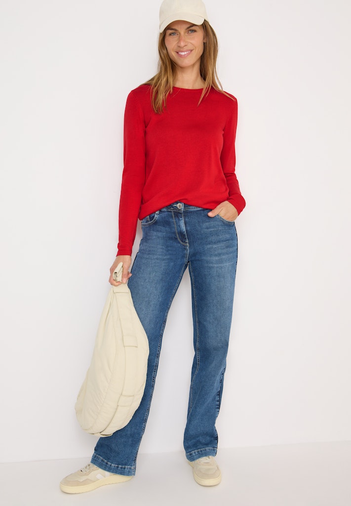Der Basic Strickpullover von CECIL für Damen punktet mit klassischem Rundhalsausschnitt und einem feinen Detail an der Schulter. Die angenehme Strickqualität sorgt für hohen Tragekomfort im Alltag. Ein unkompliziertes Lieblingsstück für vielseitige Stylings. Strickpullover Rundhalsausschnitt Langarm Detail an der Schulter Angenehme Strickqualität Material: 60% Baumwolle, 40% Viskose