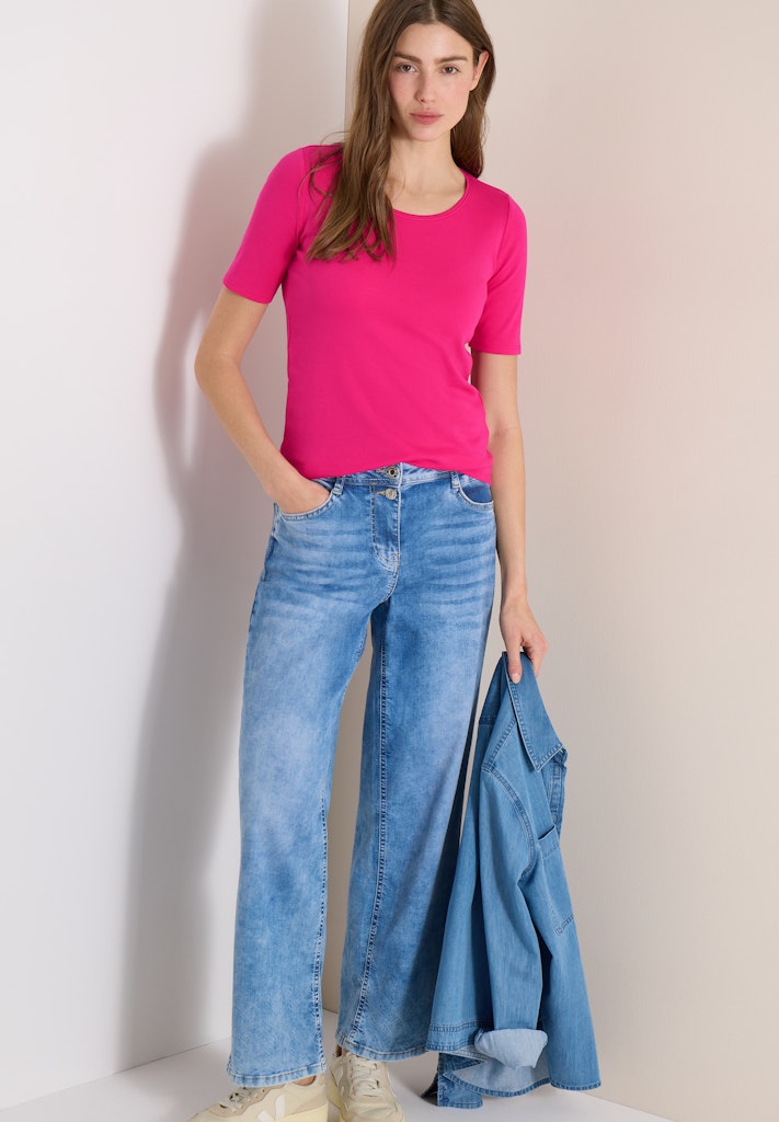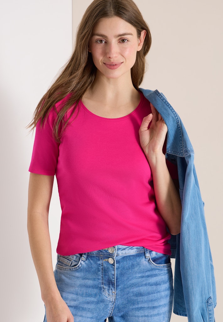 Dieses T-Shirt in Unifarbe im Style Lena von CECIL für Damen ist ein vielseitiges Essential für deine Garderobe. Das Kurzarmshirt hat einen Rundhalsausschnitt und überzeugt zudem mit einer gedoppelten blickdichten Front. Egal, ob du das Damenshirt als Single oder unter einer offenen Bluse oder Jacke trägst, das Shirt fügt sich wunderbar in deinen Stil ein und ist so über mehrere Saisons tragbar. Die Unifarbe macht das T-Shirt vielfältig kombinierbar, sodass du jede Facette deines Styles ausleben kannst. Gefertigt aus reiner Baumwolle liegt das Shirt außerdem besonders angenehm auf der Haut und sorgt für einen hohen Tragekomfort und eine angenehme und figurschmeichelnde Passform. Kurzarmshirt Rundhals Blickdicht Reine Baumwolle Als Single oder Unterziehshirt tragbar Material: 100% Baumwolle