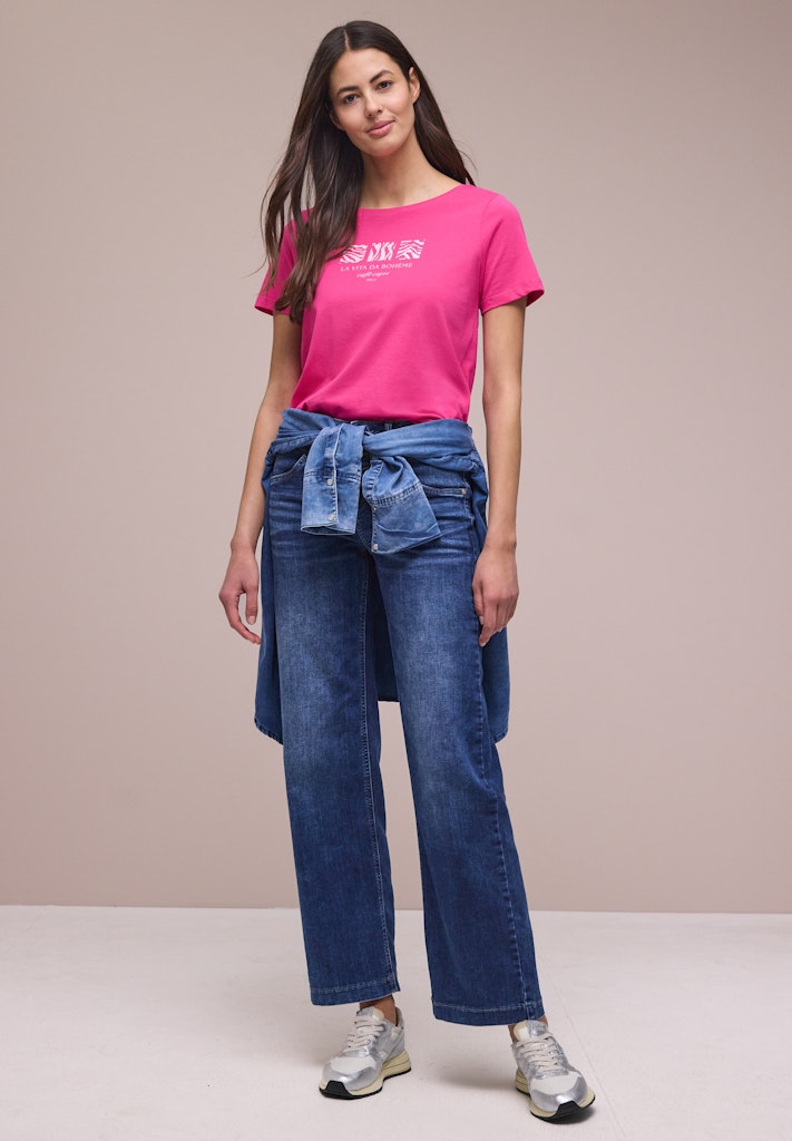 Das Basic T-Shirt mit Print von Street One für Damen ist ein vielseitiger Begleiter für zahlreiche Looks. Die reine Baumwolle fühlt sich angenehm weich auf der Haut an und macht das Jerseyshirt ideal für jeden Tag. Mit klassischem Rundhals und Kurzarm lässt es sich unkompliziert kombinieren. Ein zeitloses Essential für entspannte Outfits mit modischem Akzent. Jerseyshirt Basic Rundhals Kurzarm Vielseitig kombinierbar Material: 100% Baumwolle