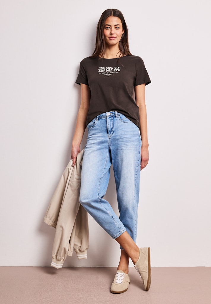 Das Basic T-Shirt mit Print von Street One für Damen ist ein vielseitiger Begleiter für zahlreiche Looks. Die reine Baumwolle fühlt sich angenehm weich auf der Haut an und macht das Jerseyshirt ideal für jeden Tag. Mit klassischem Rundhals und Kurzarm lässt es sich unkompliziert kombinieren. Ein zeitloses Essential für entspannte Outfits mit modischem Akzent. Jerseyshirt Basic Rundhals Kurzarm Vielseitig kombinierbar Material: 100% Baumwolle