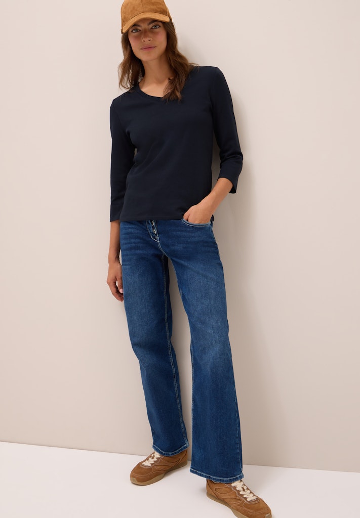 Das Basic Shirt von CECIL für Damen ist ein unkomplizierter Begleiter mit femininem V-Ausschnitt. Die 3/4 Ärmel machen es ideal für die Übergangszeit. Reine Baumwolle sorgt für natürlichen Komfort bei jedem Outfit. Damenshirt V-Ausschnitt 3/4 Arm Unifarbe Reine Baumwolle Material: 100% Baumwolle