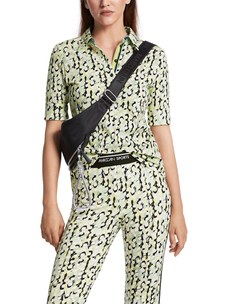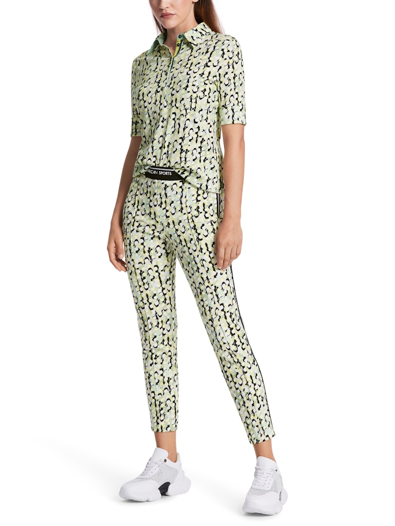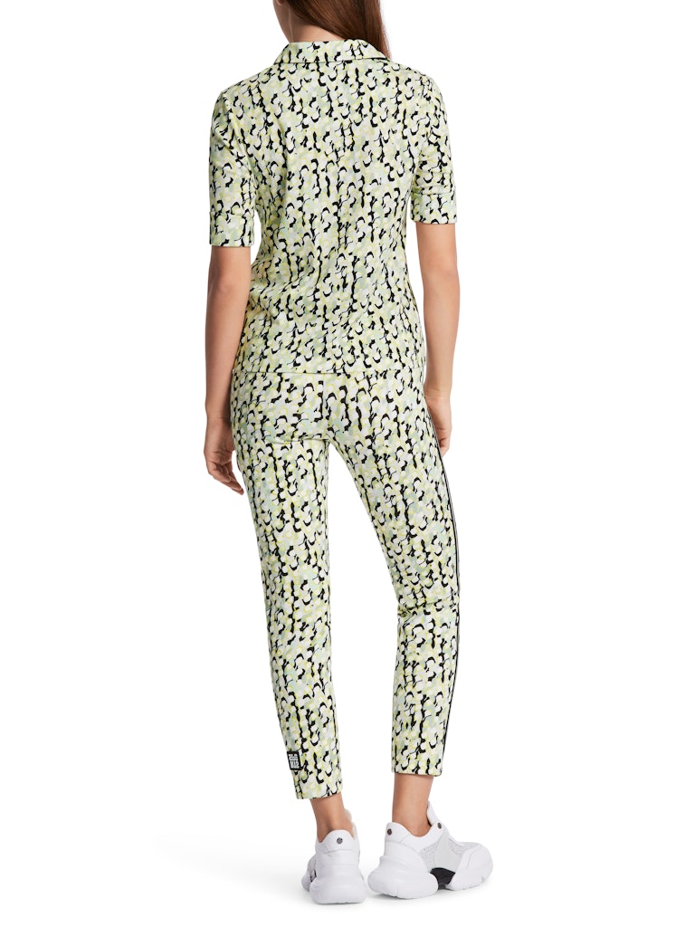 Bedrucktes Polo Shirt aus Baumwollripp|Das Poloshirt ist aus flexiblem Baumwollripp und hat eine schmale gerade Form. Der grafische Alloverprint ist mit unifarbenen Details an Kragen und Knopfleiste akzentuiert.|Schmal geschnitten|Gerade Form|Made in Europe|3/4-Ärmel|Das Model ist 179 cm groß und trägt N3/38.