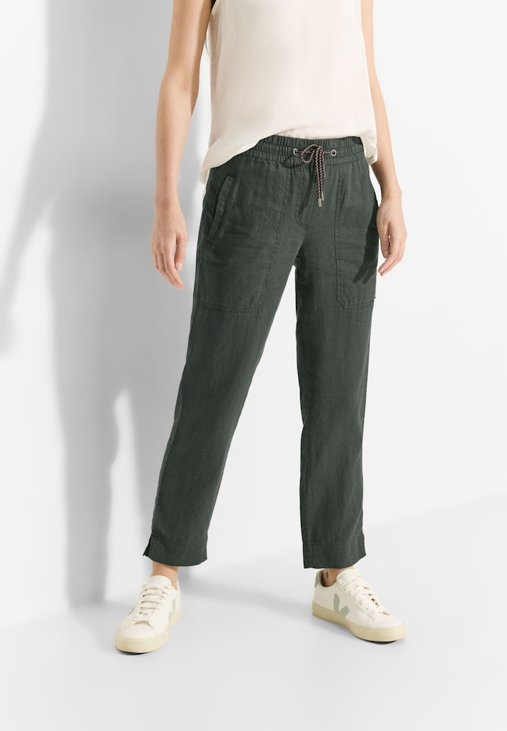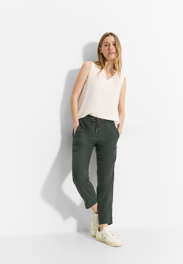 Die bequeme Leinenhose im Style Tracey von CECIL für Damen präsentiert sich als Joggpants im lässigen Fit mit mittlerer Taille und schmalen Beinen. Mit ihrem Gummibund und Tunnelzug bietet sie optimalen Tragekomfort und Flexibilität. Ausgestattet mit Eingrifftaschen und einem breiten Bund am Beinsaum ist sie nicht nur praktisch, sondern auch stilvoll für entspannte Anlässe.