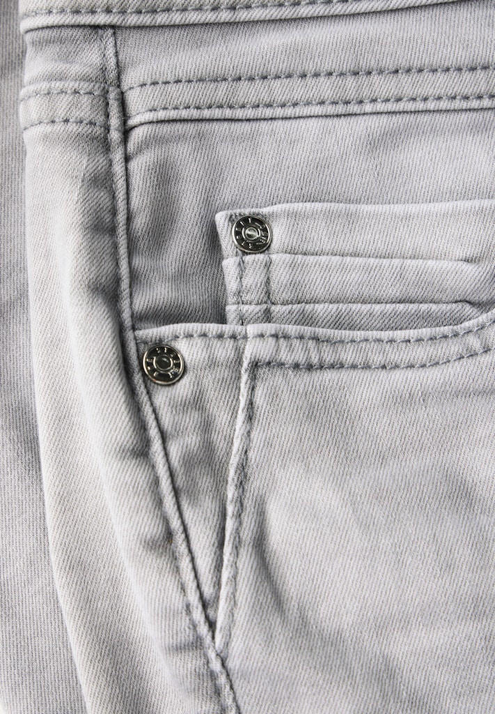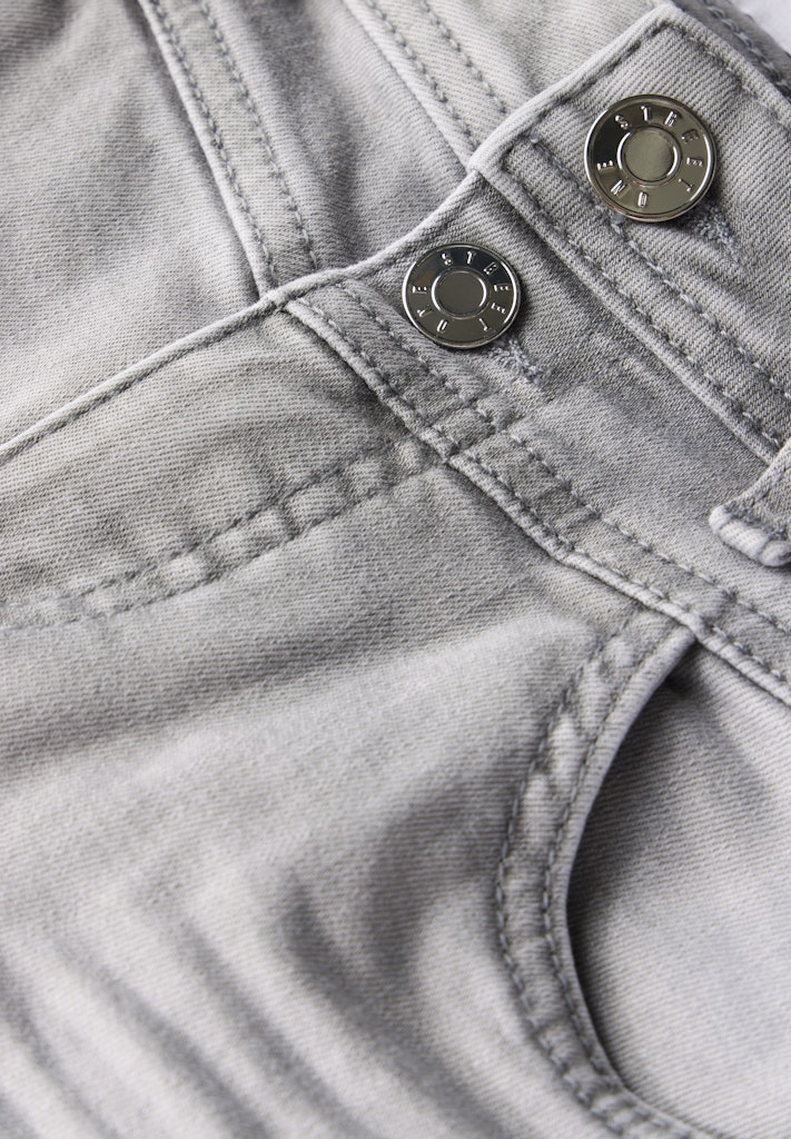 In trendigem Hellgrau präsentiert sich diese Bermuda Jeans von Street One für Damen im Casual Fit. Die Mid Waist und Slim Legs schmeicheln der Figur, während der 5-Pocket-Stil für eine klassische Denim-Optik sorgt. Dank des Baumwollmixes mit Stretchanteil trägt sie sich angenehm den ganzen Tag. Jeanshose im Casual Fit Mid Waist und Slim Legs 5-Pocket Hellgraue Waschung Baumwollmix mit Stretchanteil Material: 63% Baumwolle, 25% Polyester, 10% Viskose, 2% Elasthan