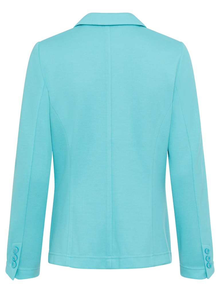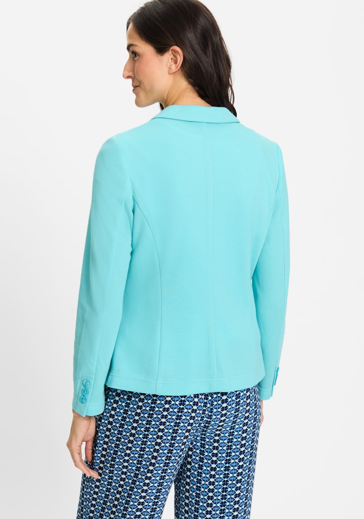 Dieser stylishe Jersey-Blazer ist ein absoluter Traum! Gekonnt vereint er Stil und Komfort, weshalb er sich zu unterschiedlichen Outfits perfekt kombinieren lässt. An den Ärmelabschlüssen befinden sich jeweils drei kleine Knöpfe, zwei größere Verschlussknöpfe auf Bauchhöhe. Die beiden aufgesetzten Taschen auf der Vorderseite sorgen für eine sportive Note. Gefertigt aus einem Wohlfühlmix aus Polyester und Baumwolle liegt der Blazer weich auf der Haut auf. Länge ca. 60 cm.
