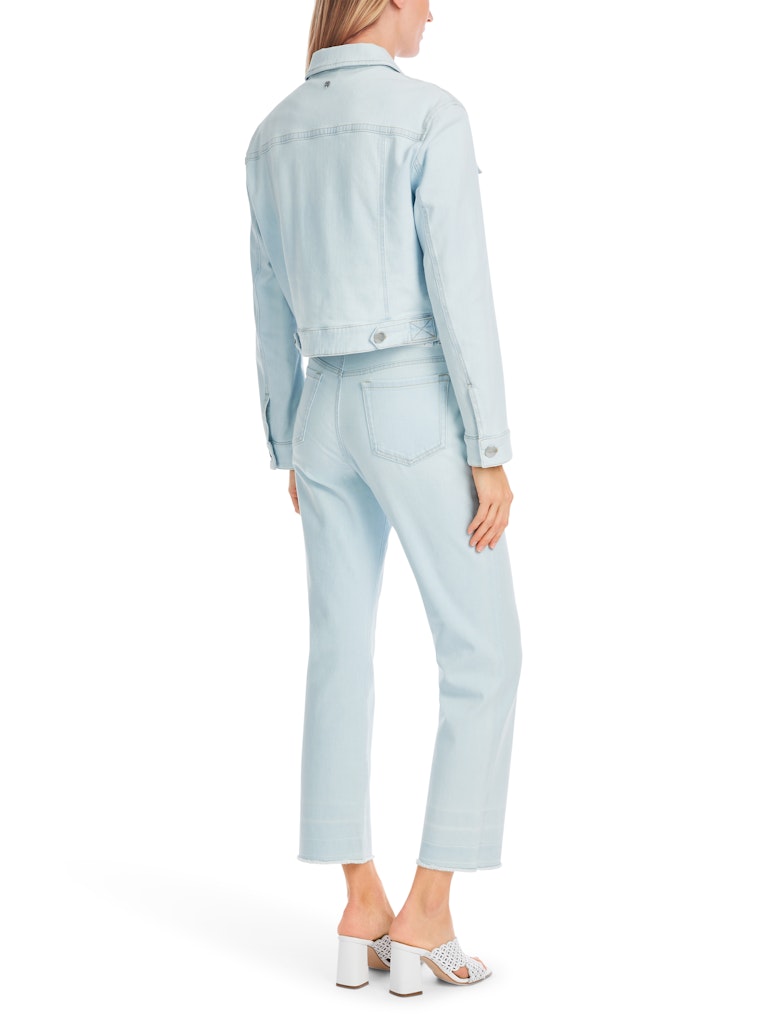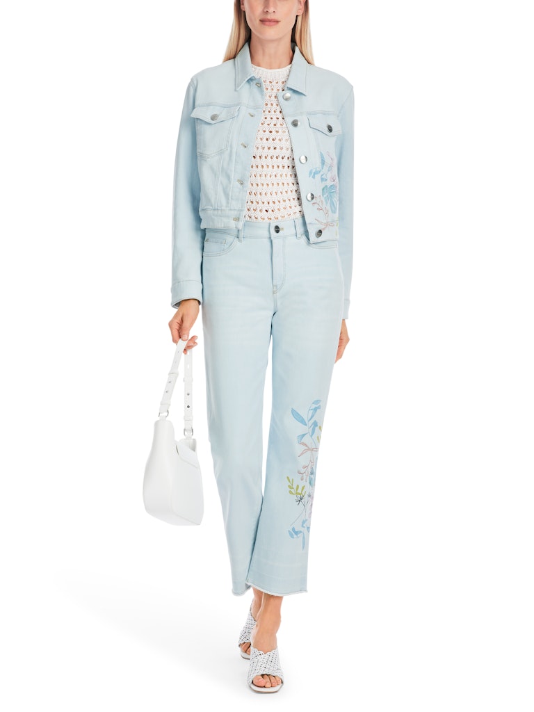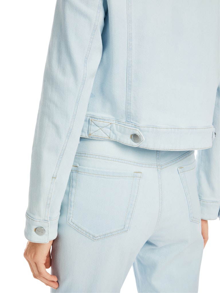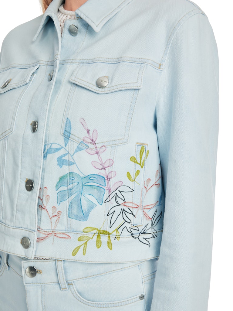 Bleached Jeansjacke "Rethink Together"|Bleached Jeansjacke in klassischem Design. Der stretchige Denim vermittelt Passform und Tragekomfort und hat einen ausgezeichneten Rücksprung. D.h., er behält seine Form. Blickfang ist der asymmetrisch platzierte Print mit Blatt-Motiv. Das Modell wird verantwortungsbewusst produziert und trägt das Nachhaltigkeitslabel "Rethink Together". Der Denim ist biologisch abbaubar.|Locker geschnitten|Candiani Denim/Rethink Together|Klassisches Design|Mit Print|Das Model ist 179 cm groß und trägt N3/38.