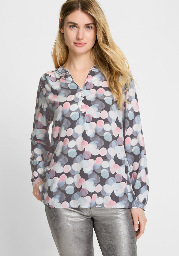 Femininer Henley-Ausschnitt, Halbe Knopfleiste, Seitlich geschlitzt
