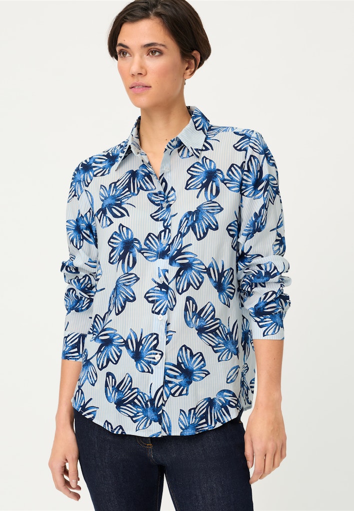 Modernes Allover-Dessin mit ausdrucksstarkem Charakter, Hemdblusenkragen für einen klaren, eleganten Look, Manschetten mit Schlitz für eine feine, strukturierte Verarbeitung, Weicher Baumwoll-Viskosemix mit angenehm fließendem Fall, Ideal für feminine Casual-Looks oder moderne Office-Outfits