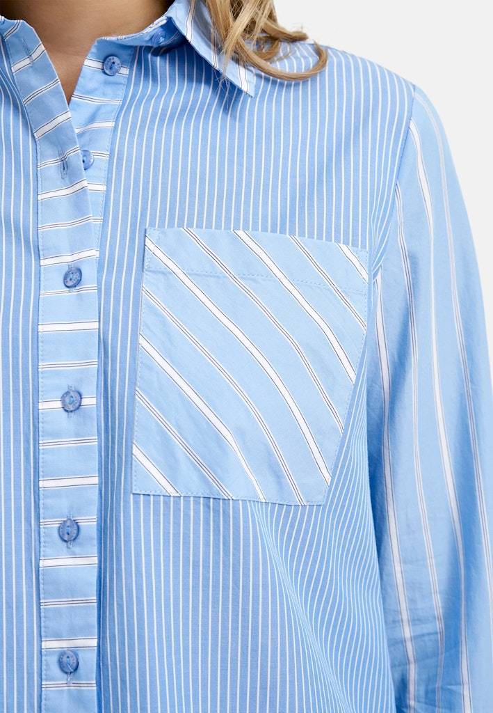 Blouse w collar + placket, chest pocket + 1/1 sleeves