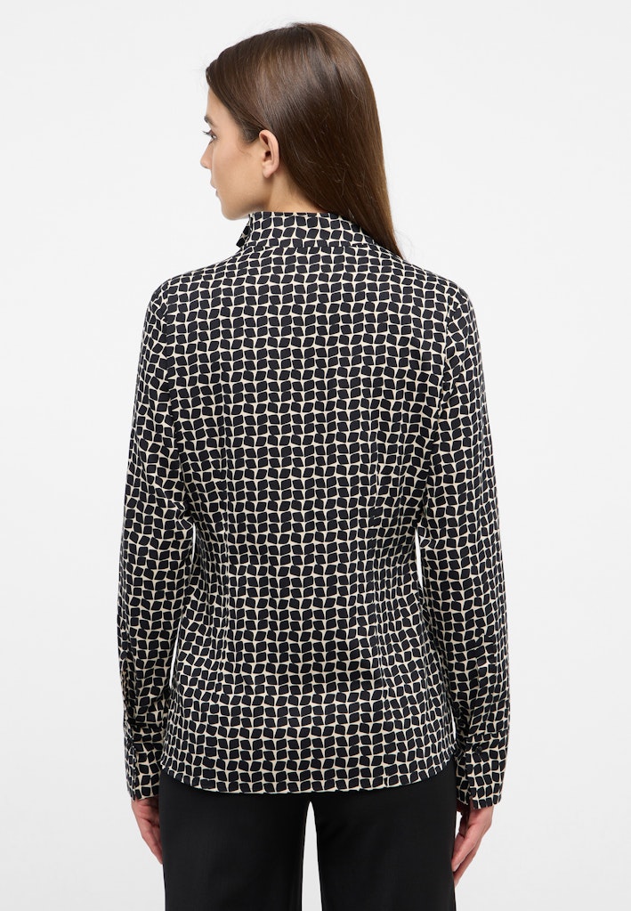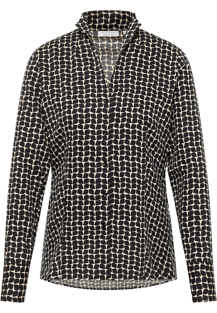 Der modische Print wird ergänzt durch modische Akzente wie den Kelchkragen, der diese Bluse zum Hingucker macht.