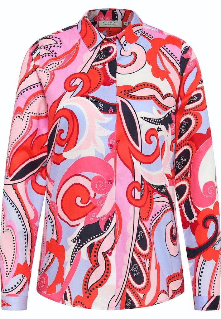 Klassische Noblesse im Zusammenspiel mit modernem Dessin machen diese Bluse zu einem absoluten Must-Have.