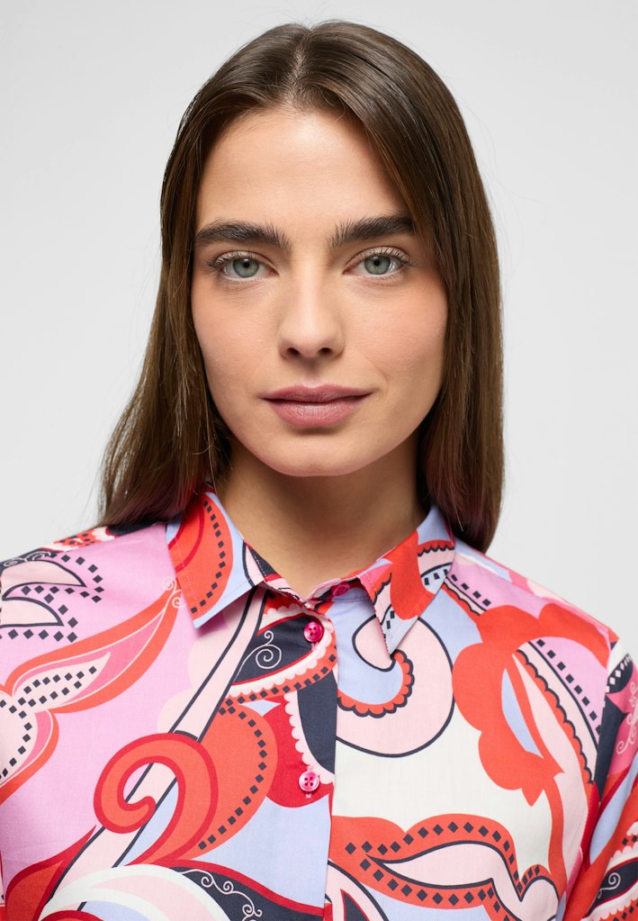 Regular Fit steht für körpernah sitzende und gleichzeitig bequeme Blusen, die die weibliche Silhouette umspielen, aber nicht einengen.