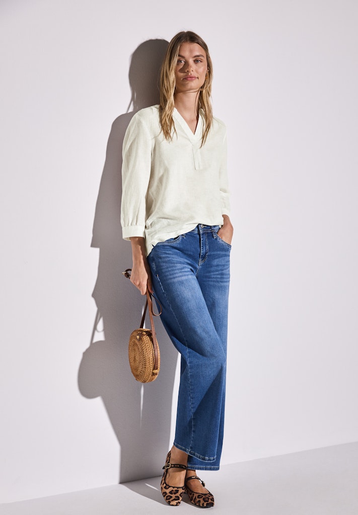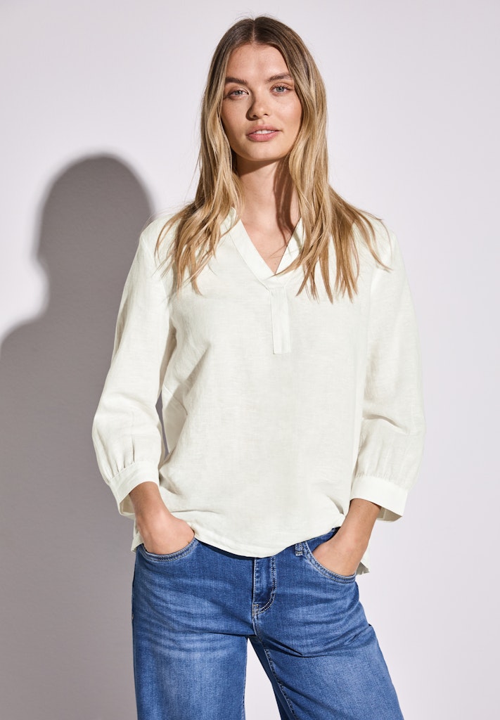 Diese Bluse von Street One für Damen überzeugt mit ihrem lässigen Design. Der geschlitzte Ausschnitt und die 3/4-Ärmel mit Bündchen verleihen ihr eine feminine Note. Der angenehme Leinen-Baumwollmix sorgt für ein luftiges Tragegefühl. Damenbluse Geschlitzter Ausschnitt 3/4-Arm mit Bündchen Angenehmer Leinen-Baumwollmix Material: 60% Leinen, 40% Baumwolle