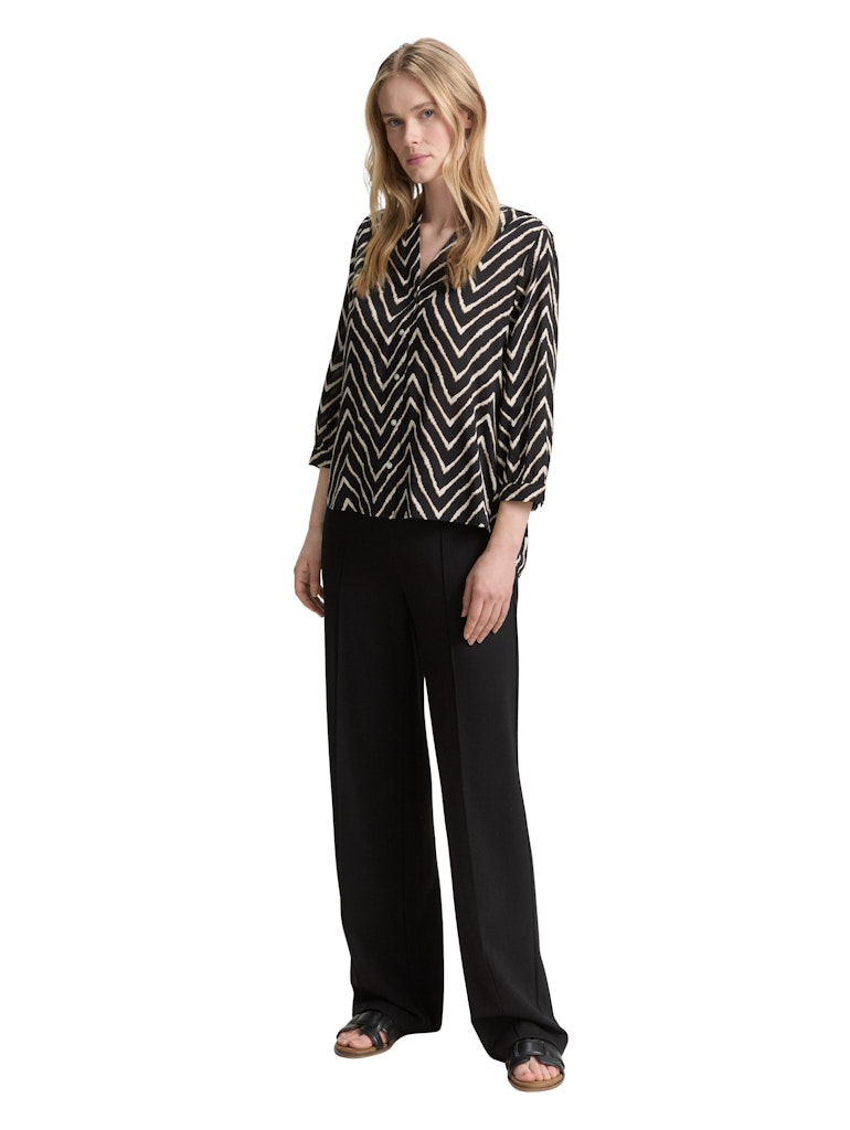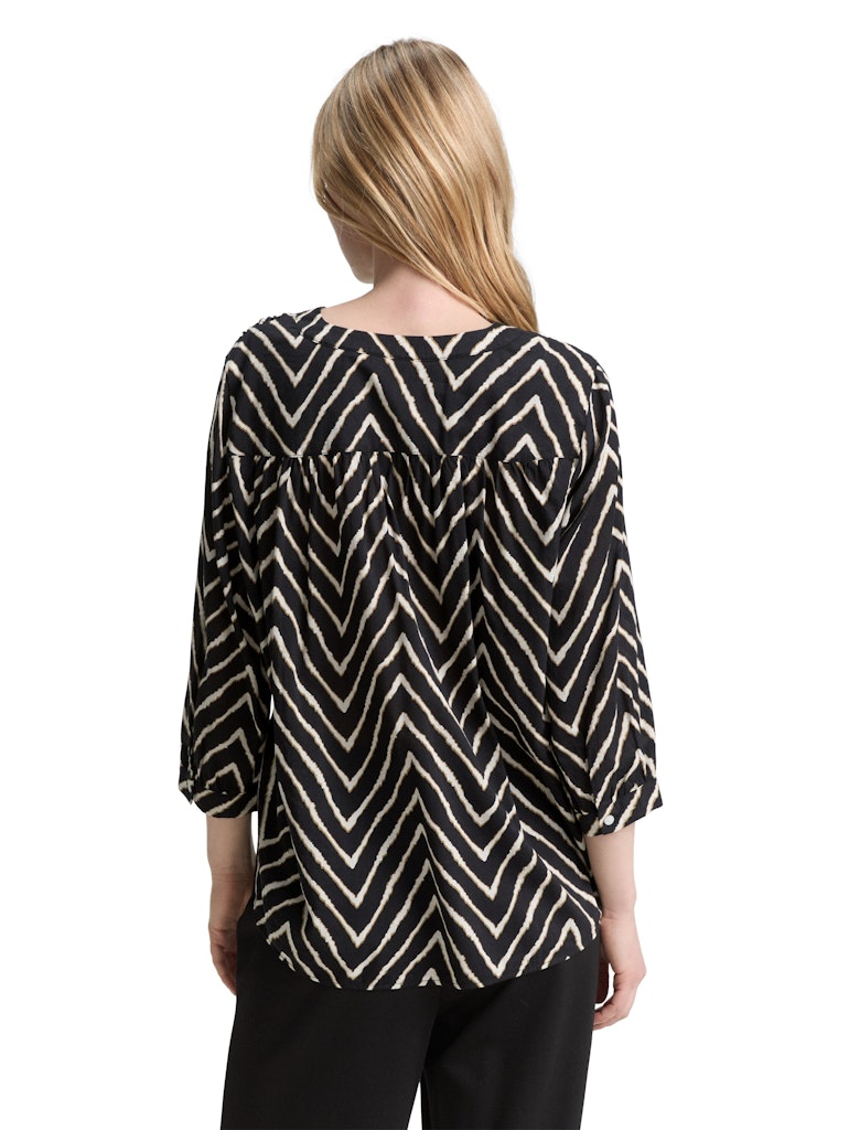 * Gemusterte Bluse mit V-Ausschnitt und Ziernaht auf dem Rücken