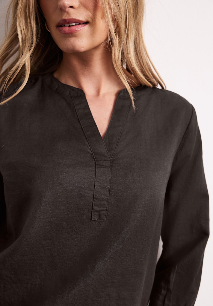 Bluse mit Split Neck aus Leinenmix