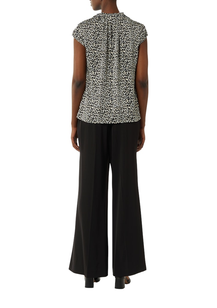 Diese gemusterte Satinbluse mit Kappärmeln ist der perfekte Eyecatcher für Ihren Sommer-Look. Das luxuriöse Material schmiegt sich angenehm an Ihre Haut und verleiht Ihnen eine feminine Silhouette. Kombinieren Sie die Bluse mit einer taillierten Hose für einen Business-Chic oder mit Jeans für einen lässigen Alltags-Style. Die kurzen Ärmel sorgen für angenehme Kühle an warmen Tagen.