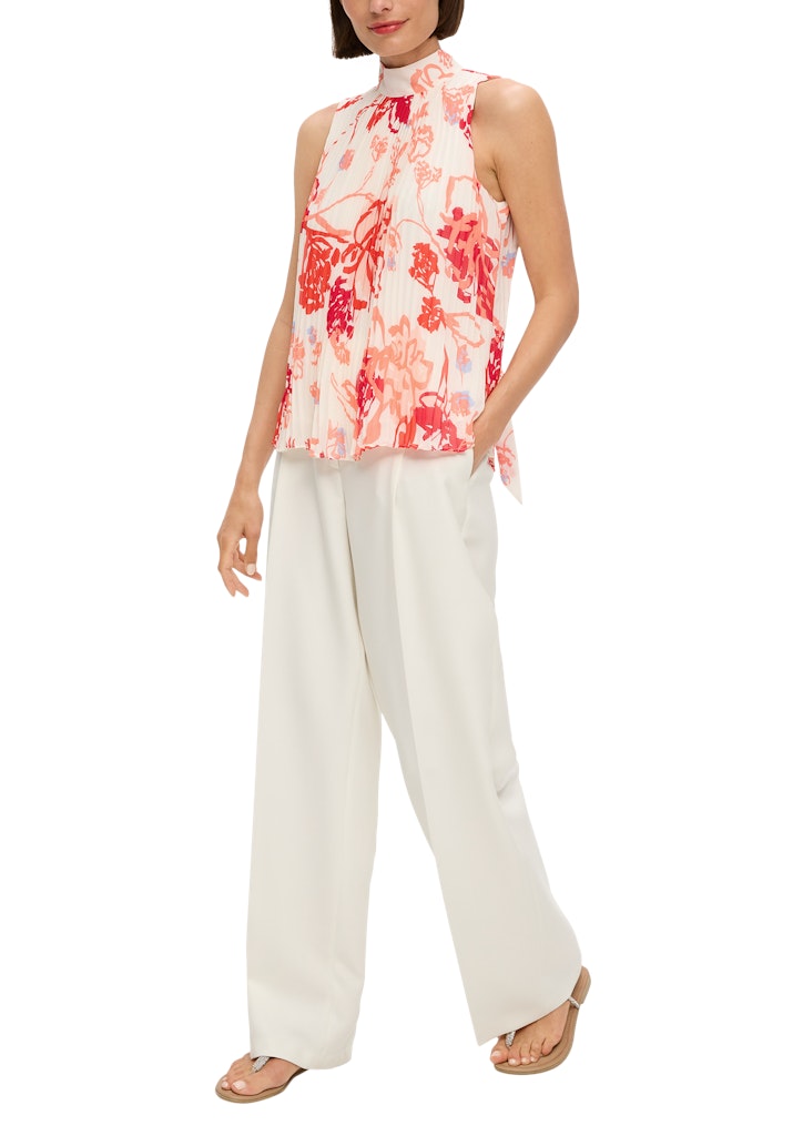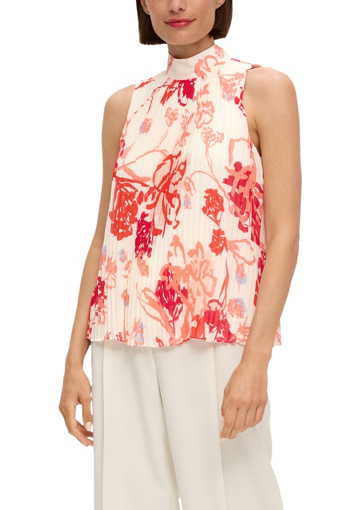 Entdecke unsere feminine Chiffonbluse mit eleganten Plisseefalten für selbstbewusste Frauen. Der luftig-fließende Stoff macht sie zum idealen Begleiter für einen lässigen Anlass. Im angesagten modischen Look gehalten, bietet sie dank des Regular Fits und des schicken Turtlenecks optimalen Tragekomfort. Die ärmellose Gestaltung verleiht dir Bewegungsfreiheit, während das Bindeband und das blickdichte Futter einen edlen Touch verleihen. Ein stylisher Begleiter für casual Tage, der sich perfekt mit Jeans oder Culottes kombinieren lässt. Hol dir diese trendige Chiffonbluse mit amerikanischem Schulter-Ausschnitt und hebe dein Outfit auf ein neues Level!