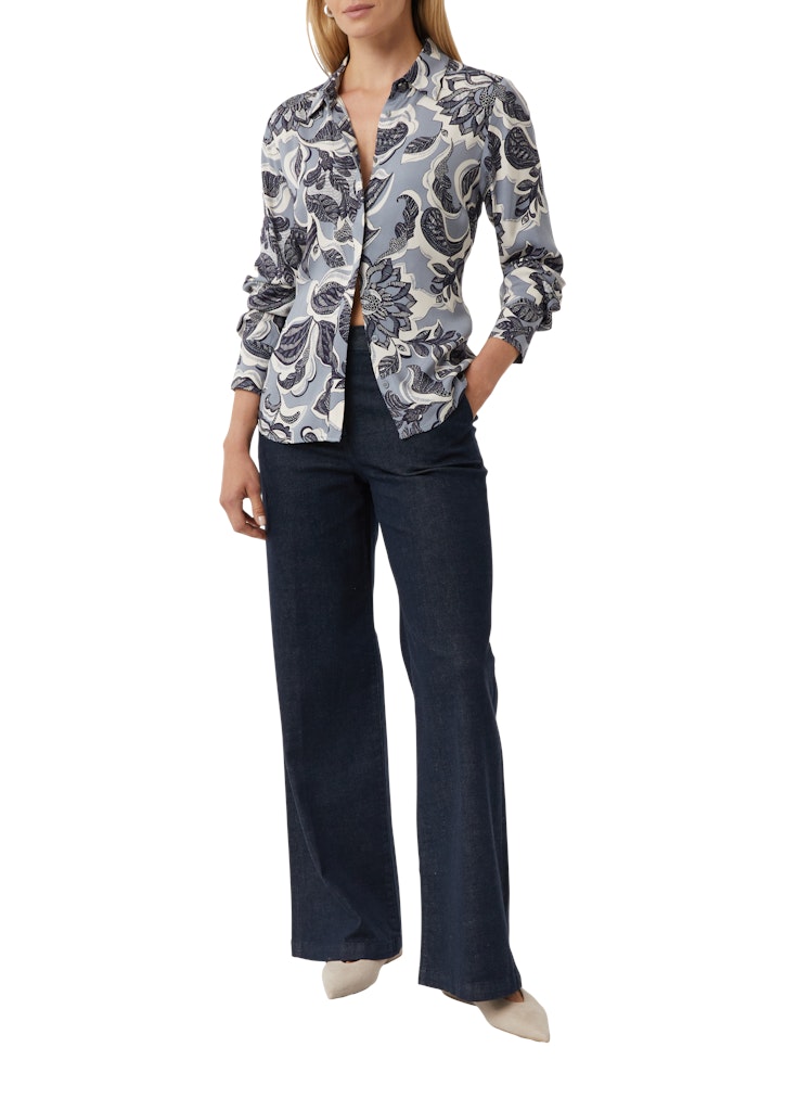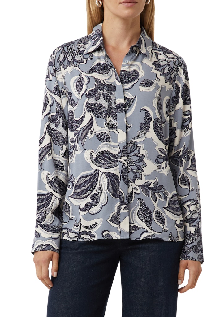Raffinierte Bluse mit All-over-Print: Ihr neues Lieblingsteil für vielseitige Looks. Der klassische Hemdkragen und die verdeckte Knopfleiste verleihen dem Piece eine elegante Note. Langarm mit Manschetten und Ärmelschlitz bieten Komfort und Stil. Die Frontpasse setzt einen modischen Akzent. Im Regular Fit geschnitten, schmeichelt sie jeder Figur. Kombinieren Sie diese halblange Bluse für einen souveränen Business-Look oder einen lässigen Freizeitauftritt.