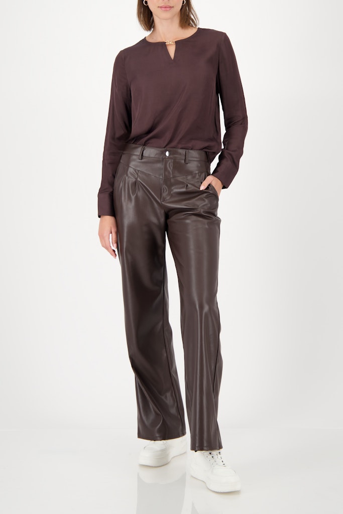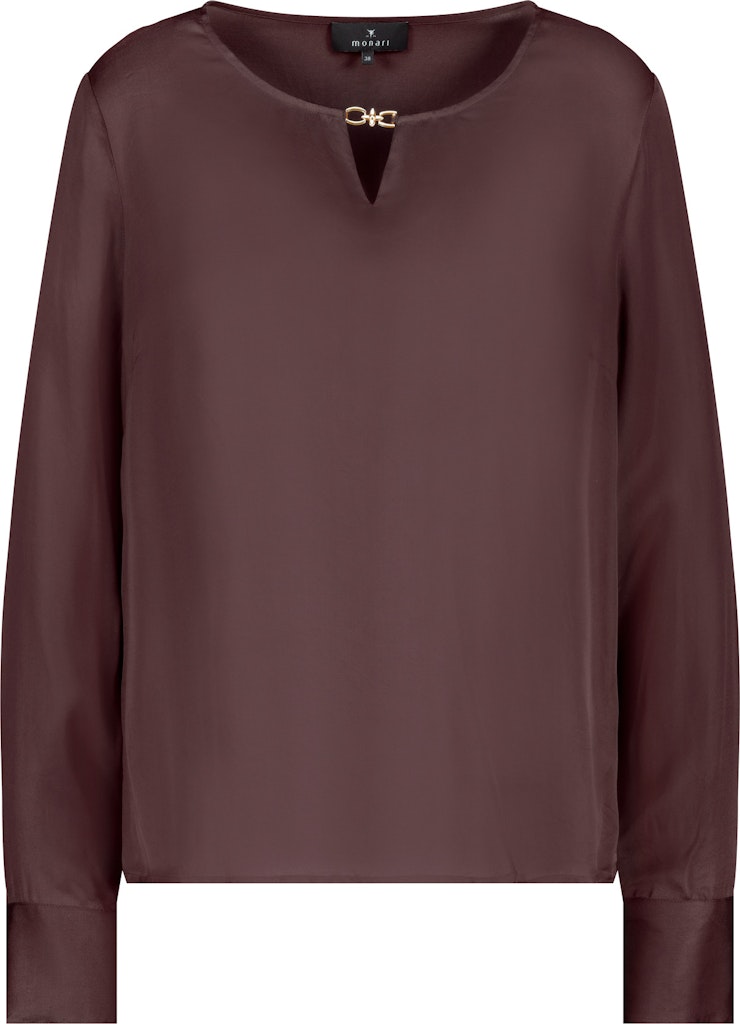 Elegante Bluse aus 100% Viskose und einem leicht transparenten Satin-Stoff mit einem feinen Schmuckdetail. Perfekt für jeden Anlass.