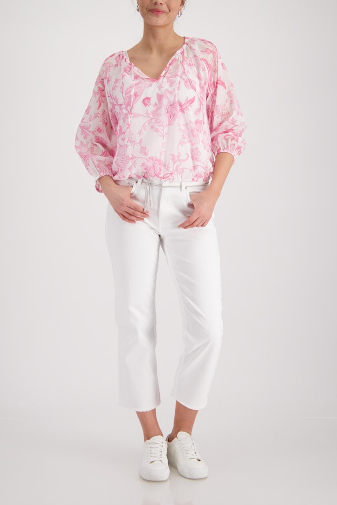 Diese luftige Bluse aus 100% Baumwolle begeistert mit ihrem Allover-Blumenmuster. Der Ärmel- und der Bodysaum mit Gummizug sorgen für einen perfekten Sitz.