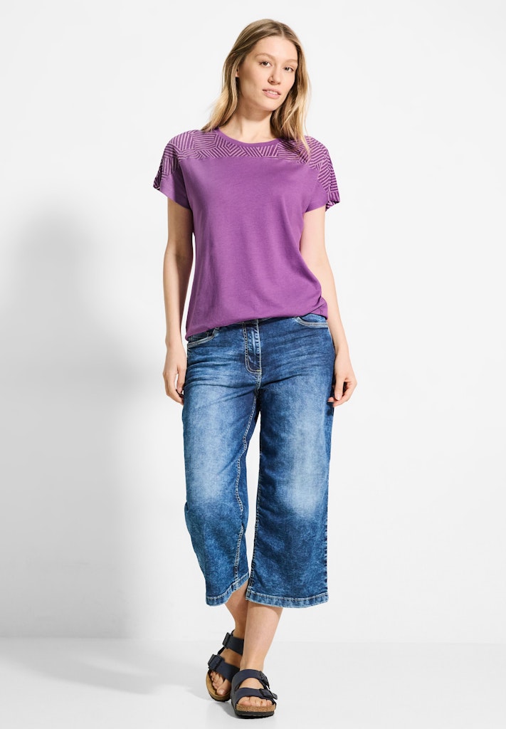 Erfrische deinen Alltagslook mit diesem stilvollen Burn-Out T-Shirt von CECIL. Der klassische Rundhalsausschnitt und der Gummibund bieten eine perfekte Passform, während die transparente Optik dem Shirt eine luftige Note verleiht.