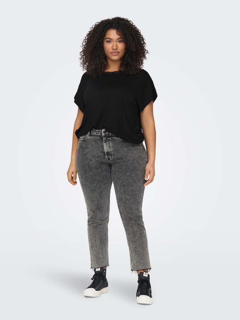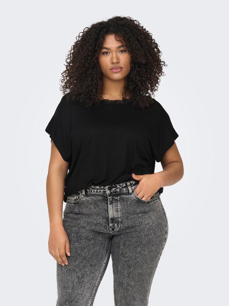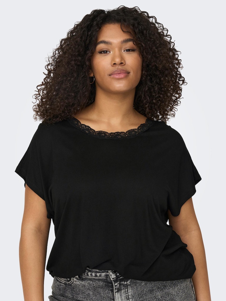 - Top mit Spitze am V-Ausschnitt v. ONLY CARMAKOMA- Einfarbig- Kurze Ärmel- Länge: 72 cm in Größe M- Das Model trägt Größe M