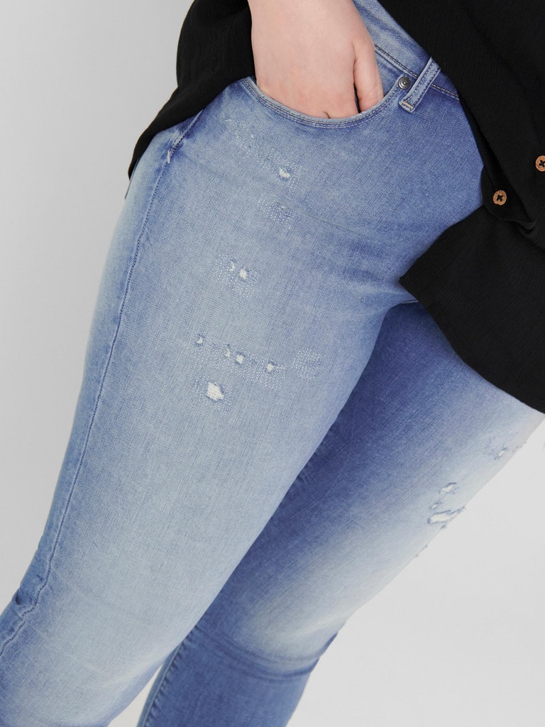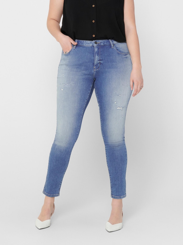 - Curvy-Jeans in Skinny Fit von ONLY CARMAKOMA- Normal Waist- Destroyed-Details vorn- 5-Pocket-Style- 5 Gürtelschlaufen- Verschluss vorn- Stretchstoff- Schrittnaht: 79 cm in Größe 46- Das Model trägt Größe 46