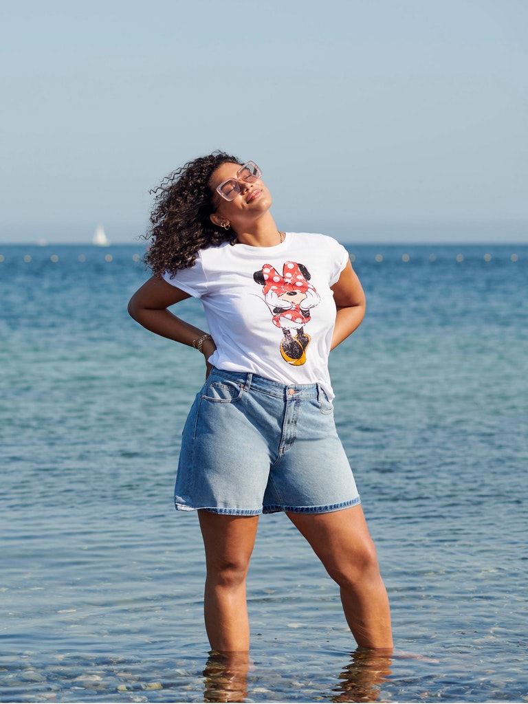 - Curvy Jeansshorts von ONLY CARMAKOMA- Verschluss vorn- 5-Pocket-Style- Gürtelschlaufen- Aufschlag unten- Schrittnaht: 12 cm in Größe 46- Das Model trägt Größe 46