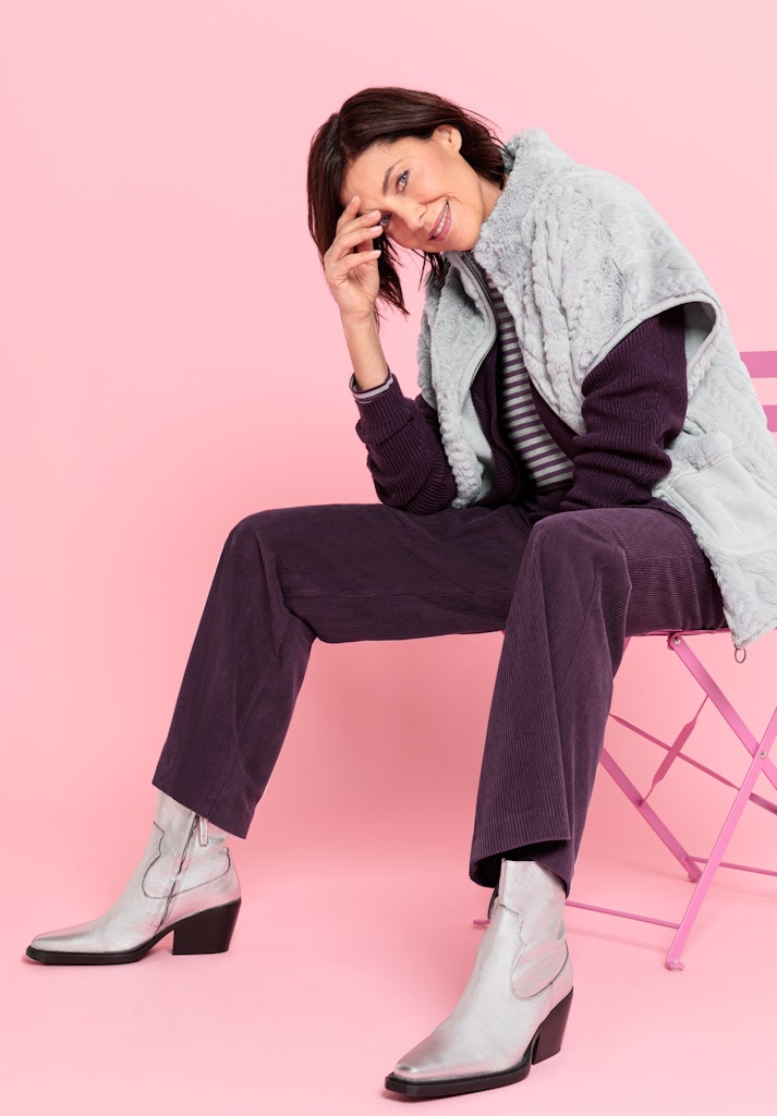 Modisch voll im Trend - unsere angesagte Plüschweste Carina überzeugt mit einem tollen 2-Weger-Reißverschluss und einem kuscheligen Stehkragen. Die überschnittene Schulter und die aufgesetzten Taschen aus kontrastigem Velourslederimitat verleihen der Weste einen besonderen Touch. Dank der hohen Materialqualität bietet sie angenehmen Tragekomfort. Mit ihrer bequemen und großzügigen Passform ist sie vielseitig einsetzbar - ob im Alltags-Style oder als Layering im Winter.
