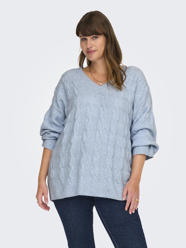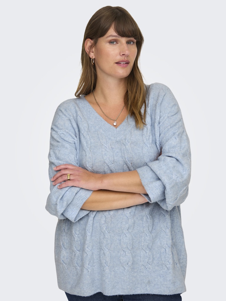 Vervollständige deinen Look mit einem zeitlosen, femininen Strickteil, das weich und warm ist.ONLY CARMAKOMA ist ein internationales Modelabel für kurvige Frauen in Größe 42 bis 54. Das Label entwirft Styles, die alle Vorzüge von schönen, weiblichen und kurvigen Silhouetten betonen, damit du jeden Tag von morgens bis abends umwerfend aussiehst.Curve-Styles sind so designt, dass sie kurvigen Frauen perfekt passen.. - Produkttyp : Strickpullover - Hals : V-Ausschnitt - Ärmel : Langarm - Ärmel : Tief angesetzte Schulter - Körperform : Curve - Passform : Knit Fit
