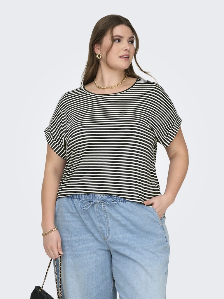 CARMOSTER STRIPE S/S O-NECK TOP JRS NOOS
