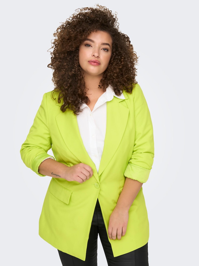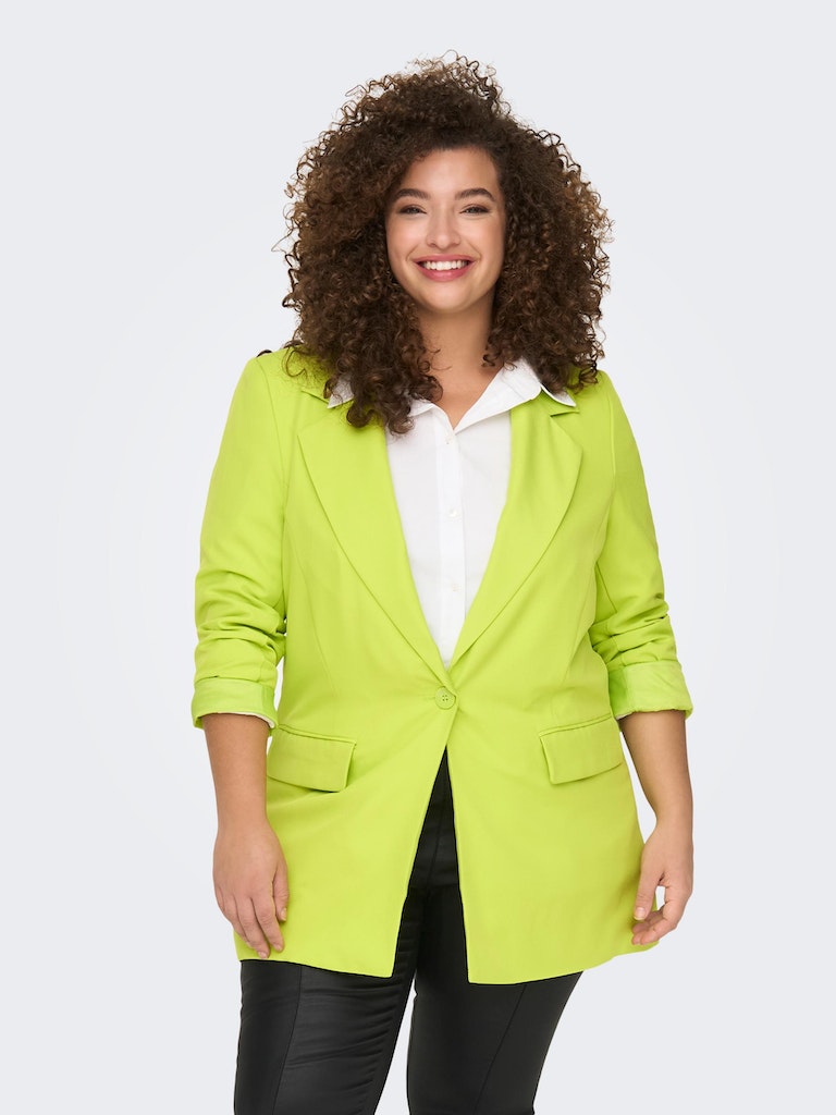 - Einfarbiger Curvy-Blazer von ONLY CARMAKOMA- Geknöpfte Vorderseite- Seitentaschen mit Patte- Einfarbig- Länge: 83 cm in Größe 46- Das Model trägt Größe 46