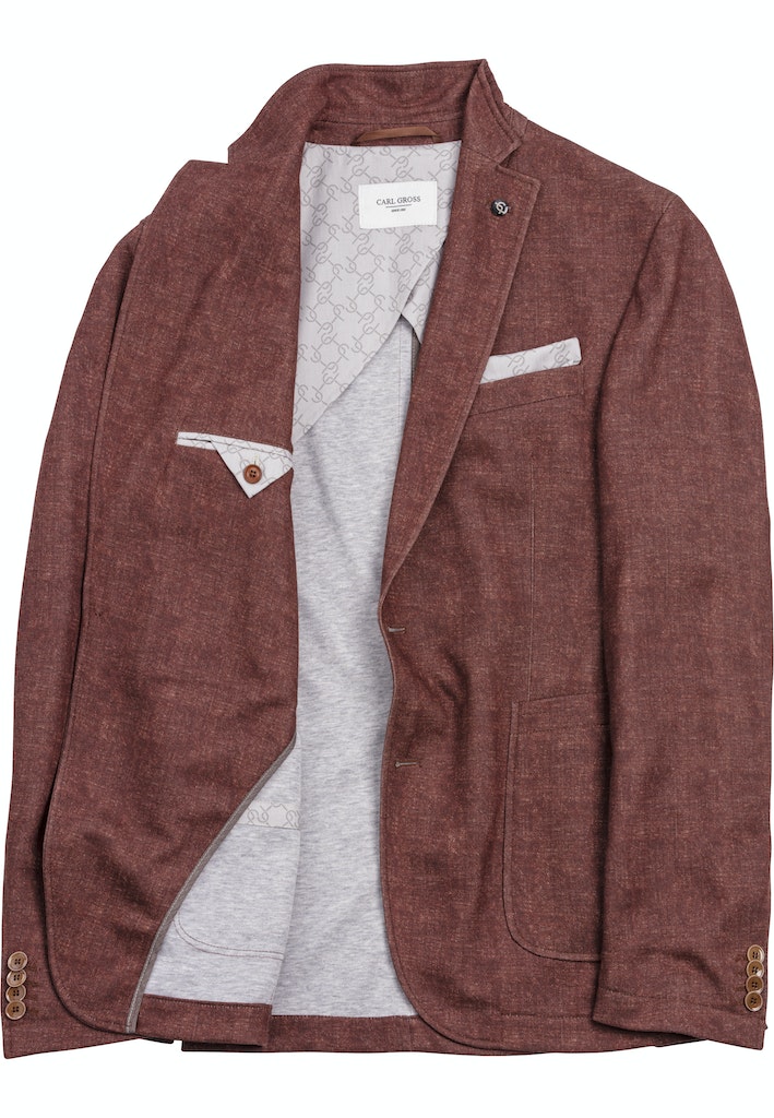 CG Fabian-J von CARL GROSS ist ein Jerseysakko in der Passform sharp fit. Das 2-Knopf-Modell mit den aufgesetzten Taschen und der schrägen Brusttasche ist ein lockeres Sakko für die wärmeren Tage des Jahres. Egal ob mit Sneakern zu einer Jeans oder mit weißem Hemd kombiniert, ist es der universelle Begleiter im Alltag.