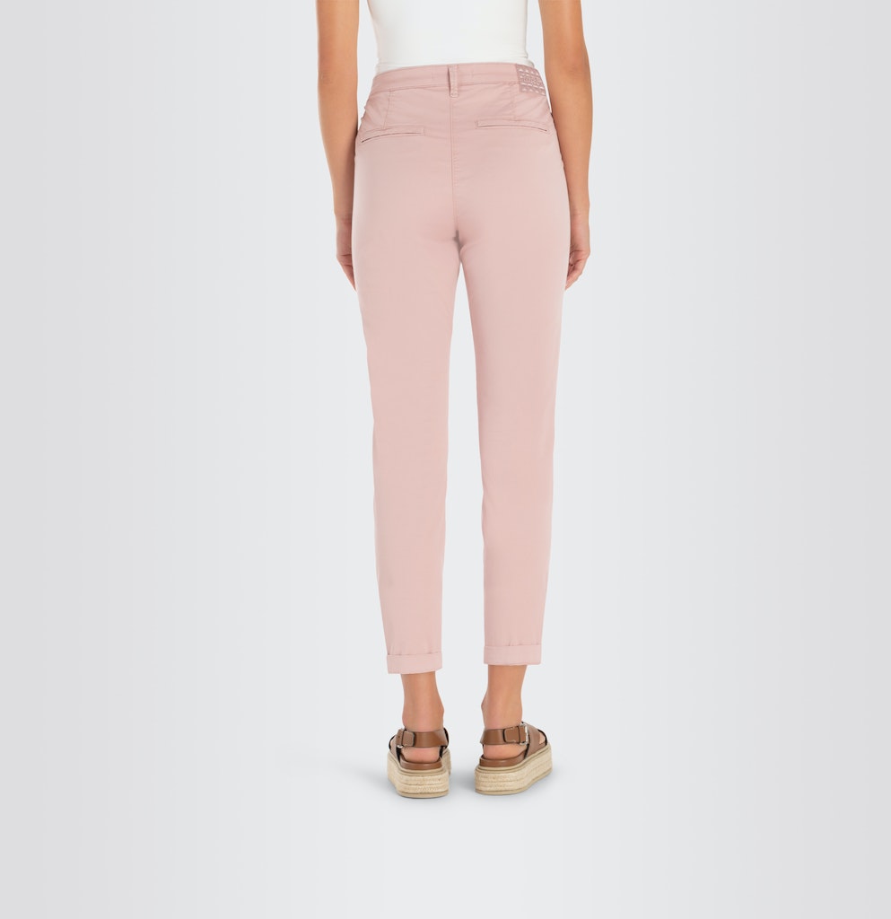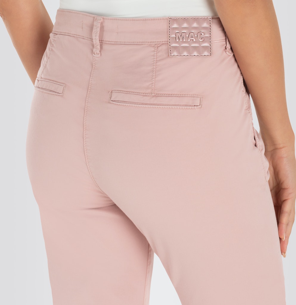Slim Fit, Slim Leg, schmal zulaufendes Bein, mittlere Leibhöhe, bequeme Taille, Chino, seitliche Eingrifftaschen vorne, Paspeltaschen hinten, feine, figurschmeichelnde Bügelfalten, dezent umgeschlagener Saum, Authentic Stretch Gabardine, hochwertige Baumwoll-Qualität mit Elasthan, weich im Griff, dezenter Glanz, hervorragendes Rücksprung-Verhalten, sportiver, eleganter Look, hoher Tragekomfort, über Better Cotton gesourcte Baumwolle, Das Model ist 1,75m groß und trägt die MAC Hosengröße 36, Fußweite bei Größe 36: 31cm