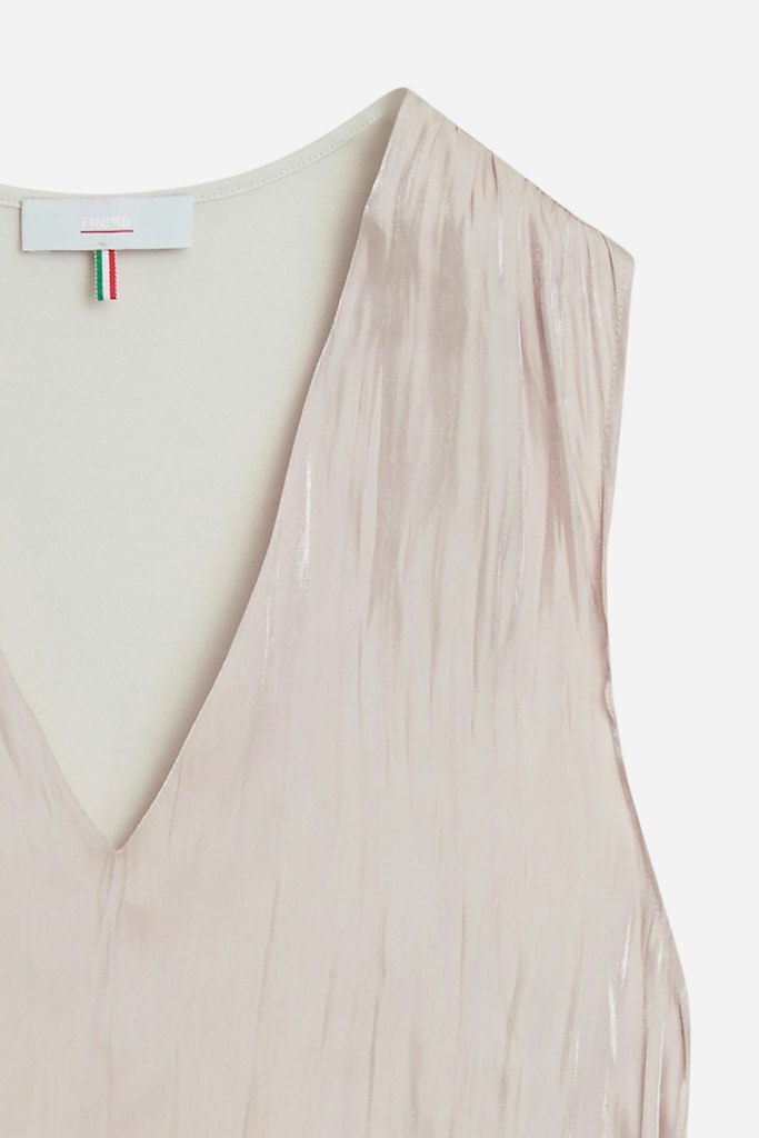 Das Highlight auf jeder Sommer-Party: das feminine Top mit V-Ausschnitt. Wirkt sexy und charmant zugleich, dank des edlen Schimmers. Wir empfehlen dazu den passenden Rock und sommerliche Heels.