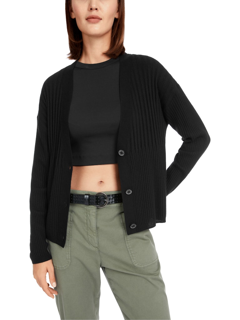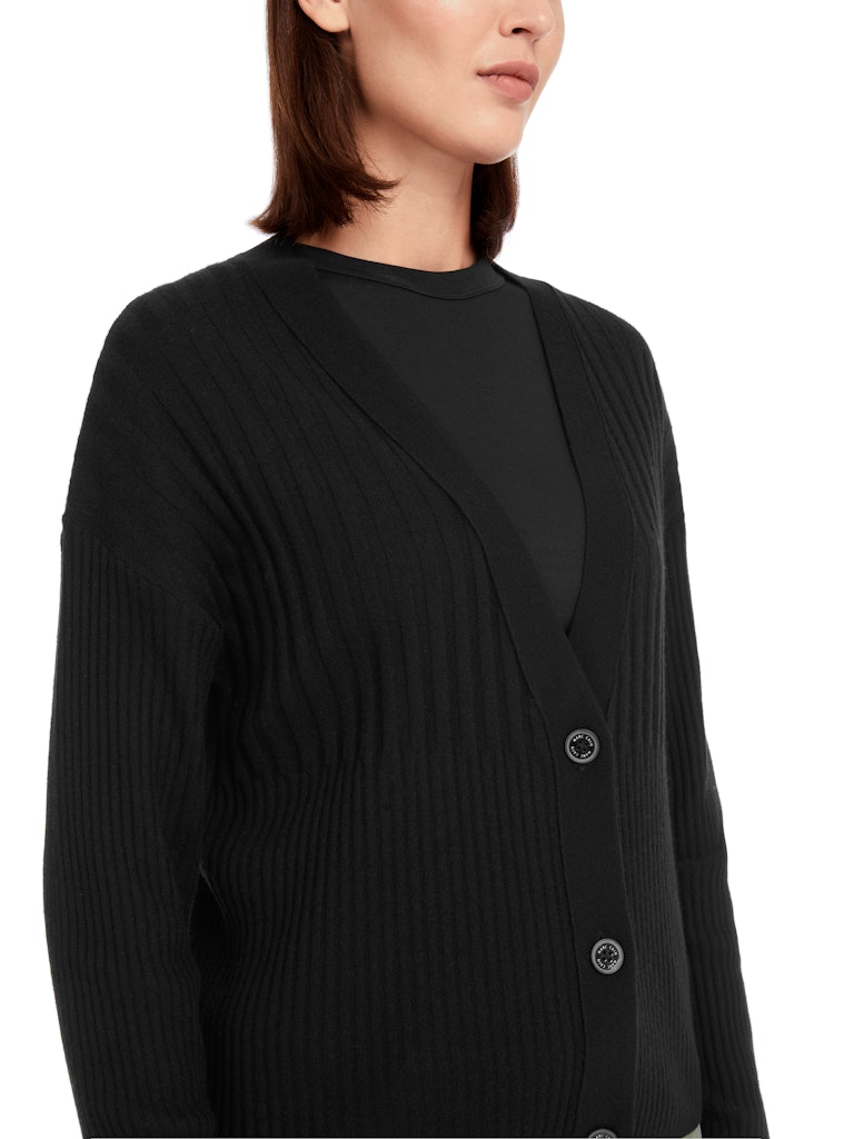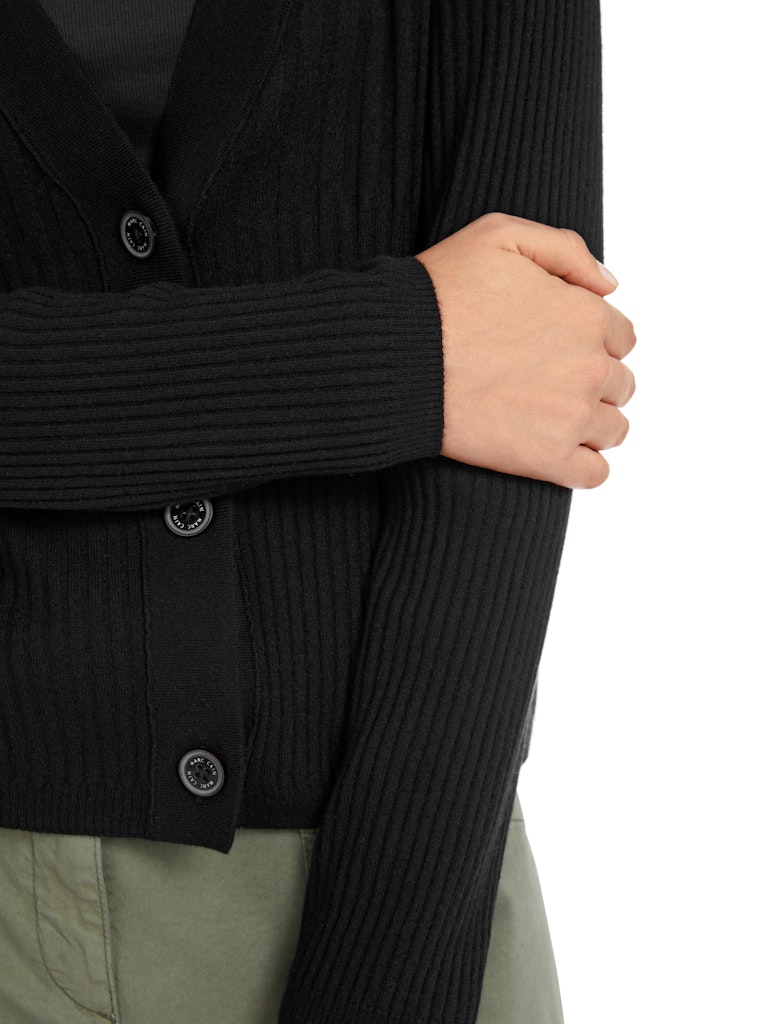 Cardigan "Rethink Together"|Cardigan aus edlem Wollmix mit Viskose und Kaschmir. Das Modell ist gerade geschnitten, hat schmale Ärmel und einen V-Ausschnitt. Zentrales Design-Moment ist der Mix aus Längsstrukturen in verschiedenen Breiten. Die Produktion erfolgt nach ökosozialen Kriterien und die Jacke trägt das Nachhaltigkeitslabel "Rethink Together".|Gerade Form|Rethink Together|Schmale Ärmel|V-Ausschnitt|Das Model ist 179 cm groß und trägt N3/38.