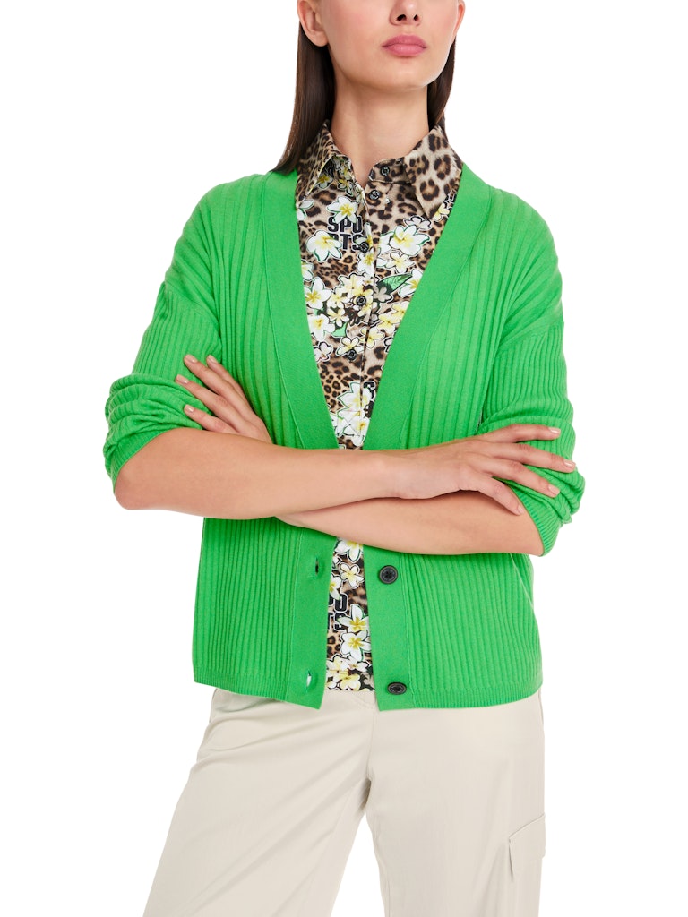 Cardigan "Rethink Together"|Cardigan aus edlem Wollmix mit Viskose und Kaschmir. Das Modell ist gerade geschnitten, hat schmale Ärmel und einen V-Ausschnitt. Zentrales Design-Moment ist der Mix aus Längsstrukturen in verschiedenen Breiten. Die Produktion erfolgt nach ökosozialen Kriterien und die Jacke trägt das Nachhaltigkeitslabel "Rethink Together".|Gerade Form|Rethink Together|Schmale Ärmel|V-Ausschnitt|Das Model ist 179 cm groß und trägt N3/38.