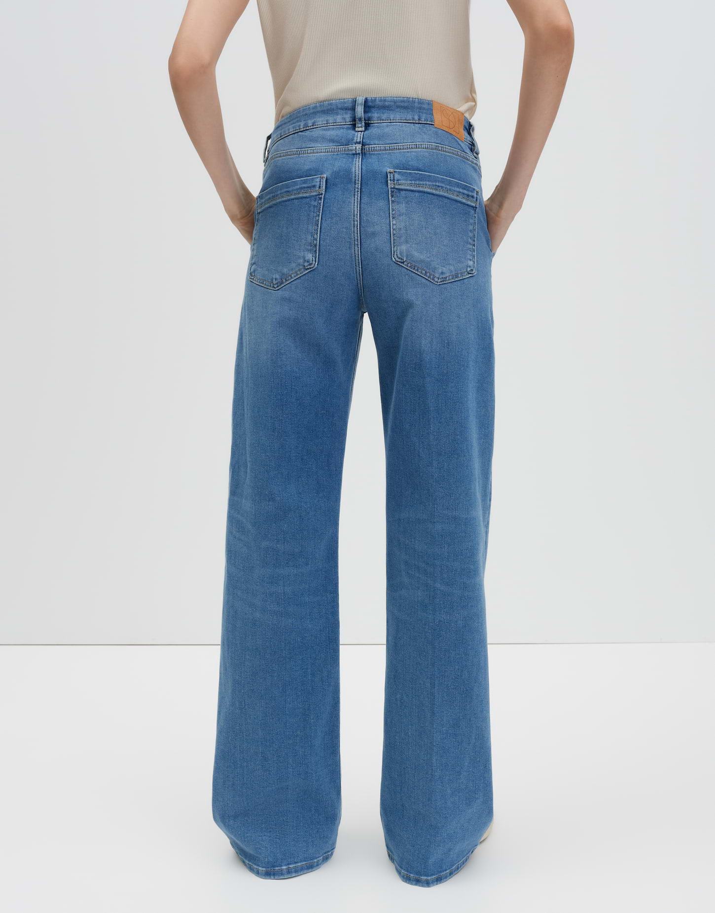 leicht ausgestellt, Hosenbein Innenlänge in jeder Größe: 81 cm , Model Größe 177 cm - trägt Größe 36, BCI Cotton Mix, Denim, elastischer Stoff, helle Wascheffekte, französische Taschen eckig abgenäht, optische Bügelfalte, verdeckter Zip-Fly, Gürtelschlaufen