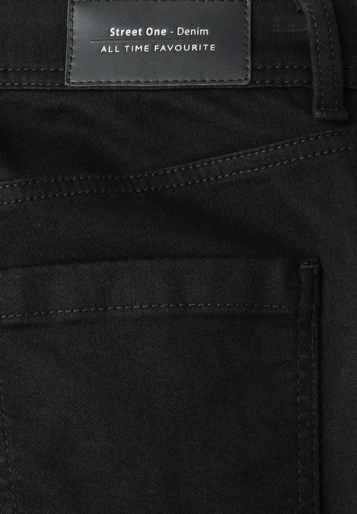 Die Jeans im Style Jane von Street One für Damen überzeugt mit einem bequemen Casual Fit und figurbetonten Slim Legs. Die schwarze Waschung sorgt für einen zeitlosen Look, der sich vielseitig kombinieren lässt. Der stretchige Baumwollmix garantiert angenehmen Tragekomfort – ideal für deinen Alltag. Jeanshose Mid Waist und Slim Legs Schwarze Waschung 5-Pocket-Style Baumwollmix mit Stretchanteil Material: 63% Baumwolle, 25% Polyester, 10% Viskose, 2% Elasthan