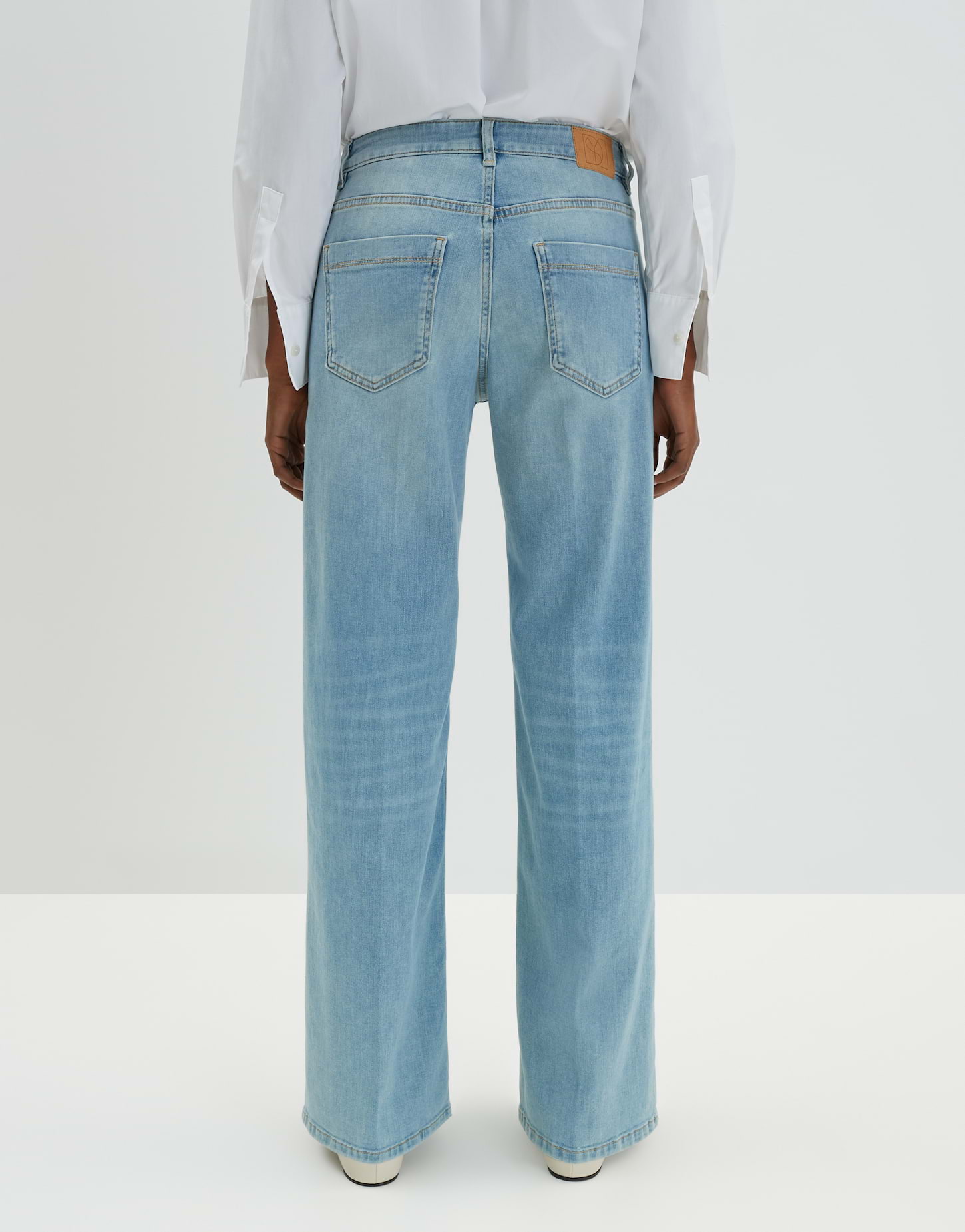 weit am Oberschenkel, weiter, gerader Beinverlauf, Beininnenlänge ca. 80 cm in jeder Größe, Model Größe 178 cm - trägt Größe 36, Denim, leicht elastischer Stoff, 5-Pocket-Design, Bügelfalten, verdeckter Zip-Fly Verschluss, Gürtelschlaufen, Crinkle Effekte