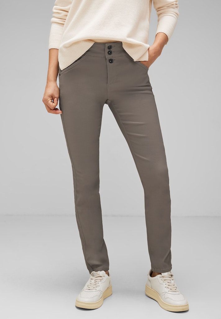 Slim Fit Damenhose, Slim Legs, Middle Waist, Coating, Unifarbe, Eingrifftaschen
