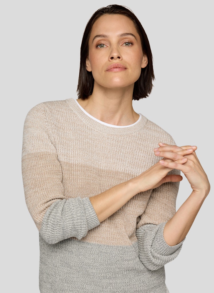 Dieser Pullover besticht durch seine grobe Strickstruktur und die breiten Blockstreifen. Der Rundhalsausschnitt und die klassische Passform machen ihn alltagstauglich und bequem. Ein besonderes Highlight ist der Maguey-Anteil: Die aus Agaven gewonnene Naturfaser verleiht dem Material eine leicht griffige Oberfläche und unterstützt die Formstabilität _ für ein angenehmes Tragegefühl mit natürlichem Charakter. Mit Naturfaser Maguey. Blockstreifen-Design. Grob gestrickt mit Struktur. Rundhalsausschnitt. Pflegeleichte Materialmischung